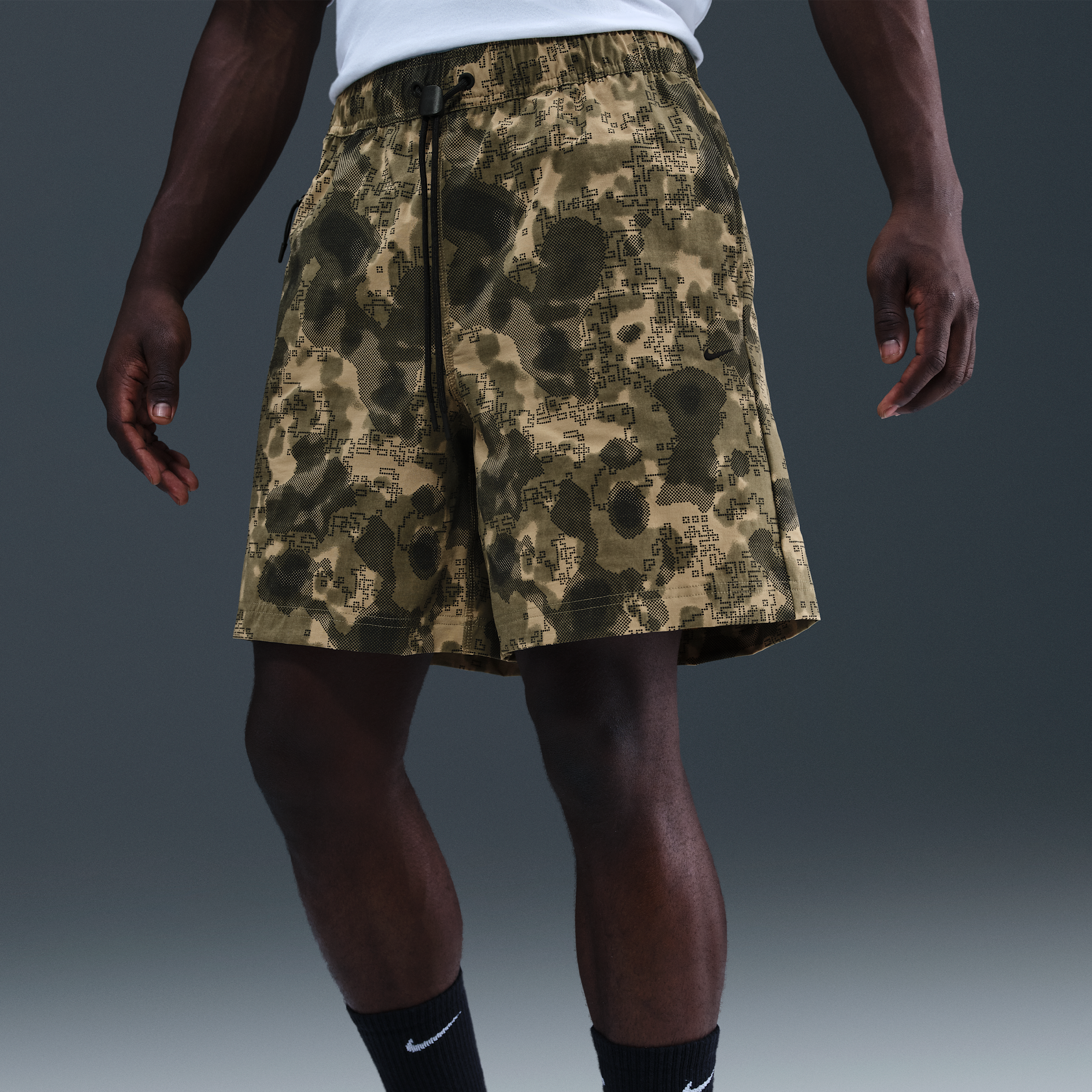Il look grintoso degli shorts camo fatigue si rinnova con un aggiornamento tecnico.