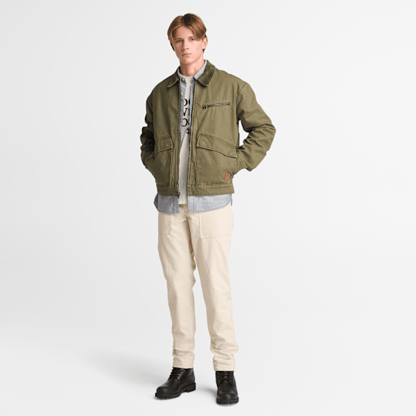 Maak een statement met het Timberland®-T-shirt van 100% katoen, met print op de voor- en achterkant en een authentieke pasvorm