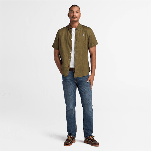 Timberland - Camicia a Maniche Corte in Lino Mill Brook da Uomo in verde | ricciano ITALY