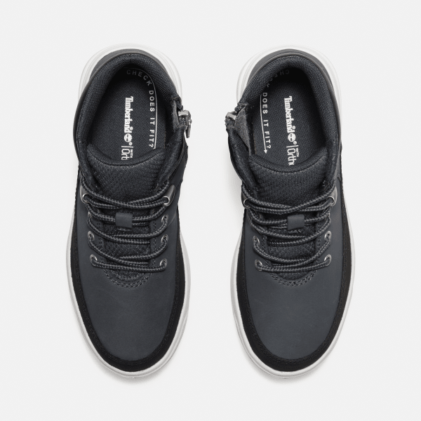 Het Premium Timberland® Leather en een OrthoLite®-voetbed van deze halfhoge vetersneakers voor junioren zorgen voor langdurig comfort en duurzaamheid.