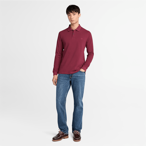Timberland - Millers River Piqué Poloshirt met lange mouwen voor heren in bordeauxrood | ricciano BELGIUM