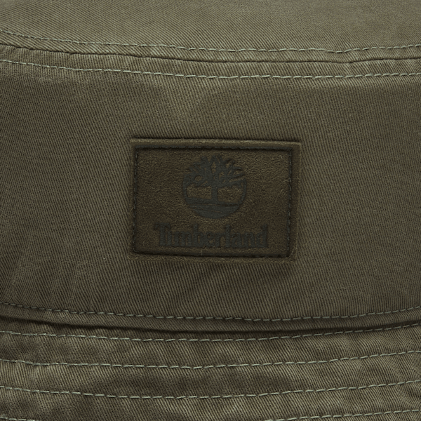 Dieser Fischerhut aus 100 % Baumwolle verfügt über einen weichen, gestanzten Aufnäher mit gestapeltem Logo aus Wildleder und eine Oberfläche aus gebürstetem Baumwoll-Twill.