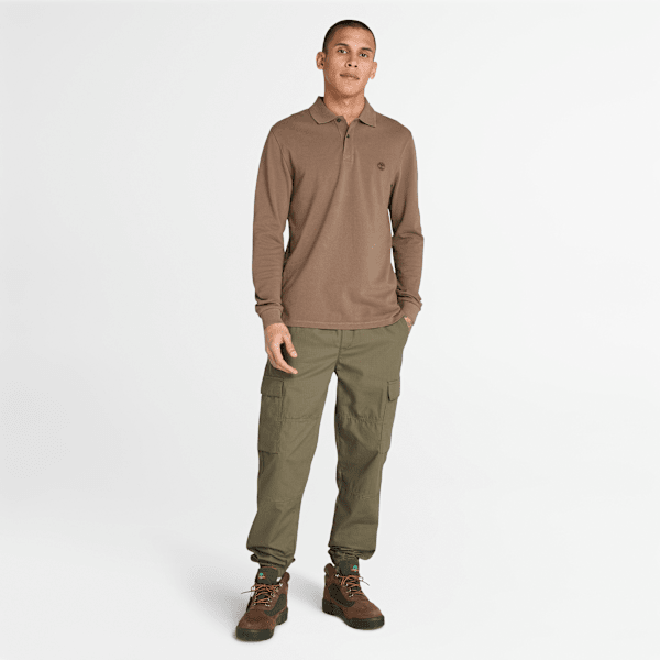 Timberland - Millers River Langarm-Polohemd aus Pikee für Herren in Braun