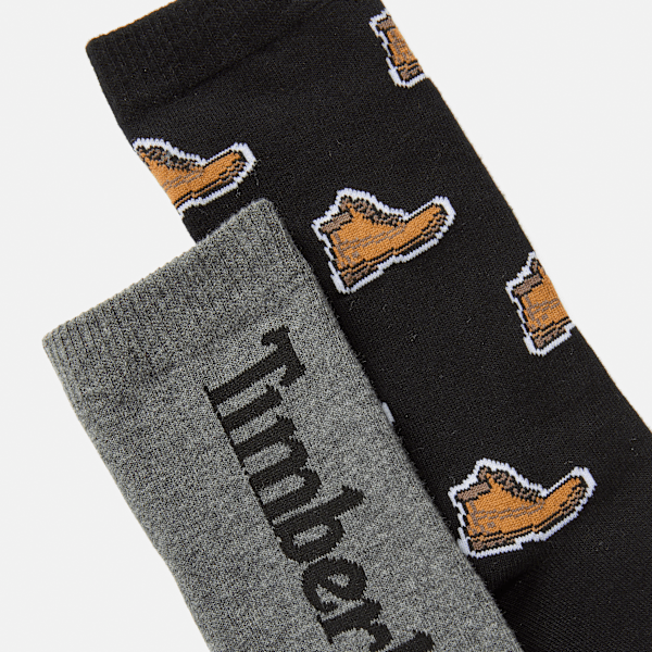 Timberland - Timberland 2-Pack All-Over Boot Print Crew Sock in Black