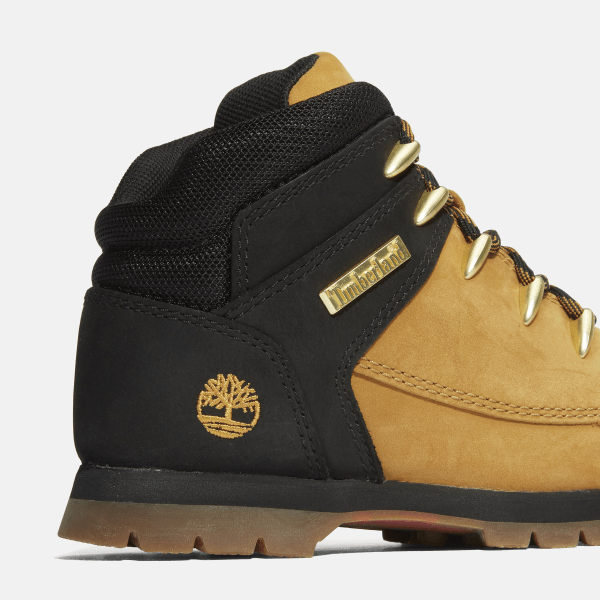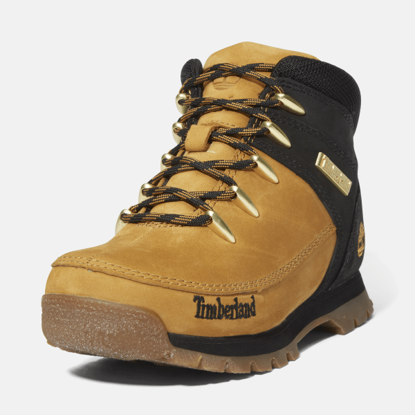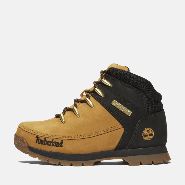 They're made with premium Timberland® leather, a ReBOTL™ fabric lining containing at least 50% recycled PET plastic, and an EVA footbed and midsole to help cushion your little one's feet