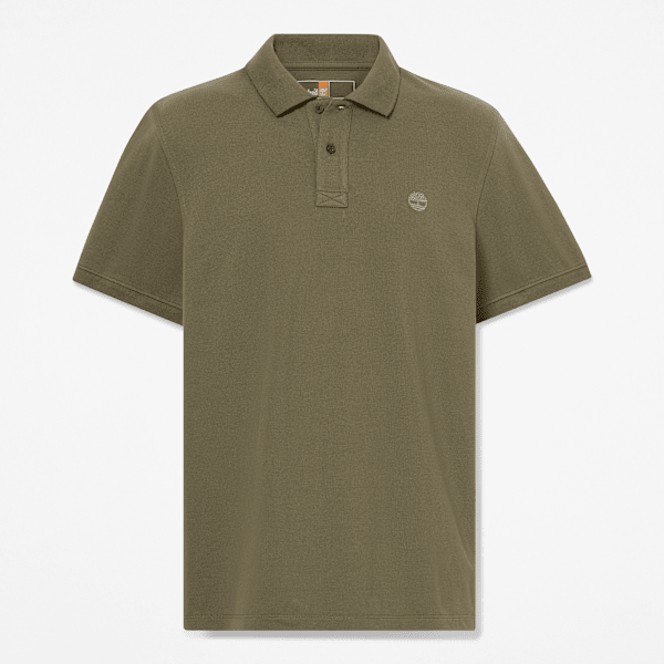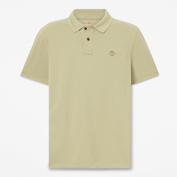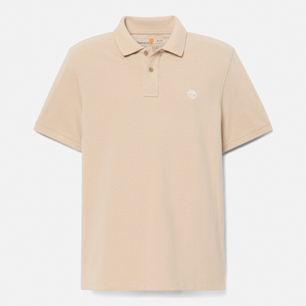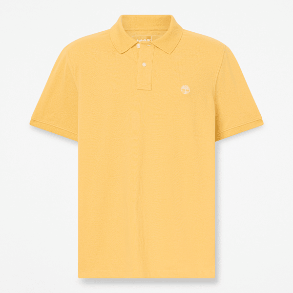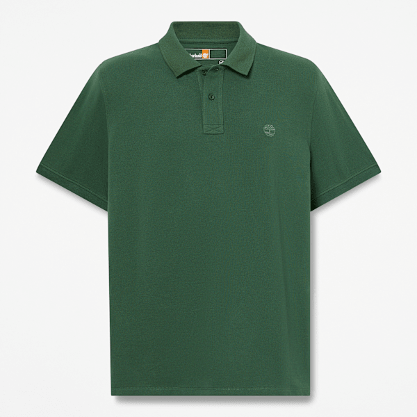 Our Millers River Pique short-sleeve polo features a regular fit, ribbed cuffs, and an embroidered Timberland Tree logo.