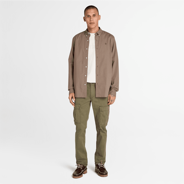 Timberland - Long-Sleeve Stretch Poplin Shirt for Men in Brown | ricciano UNITED KINGDOM