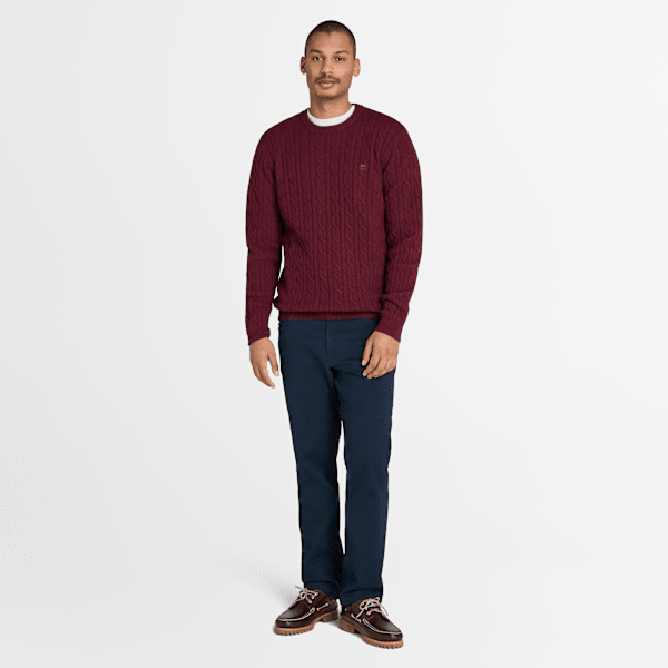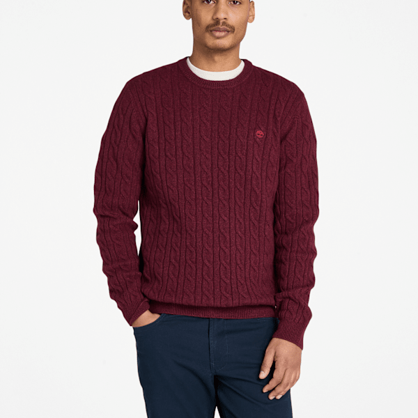 Timberland - Phillips Brook Crewneck Cable-knit Jumper for Men in Burgundy