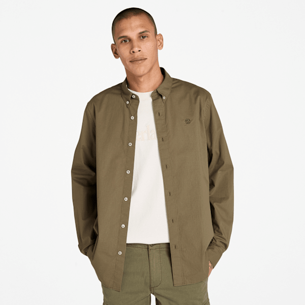 Timberland - Long-Sleeve Stretch Poplin Shirt for Men in Brown | ricciano UNITED KINGDOM
