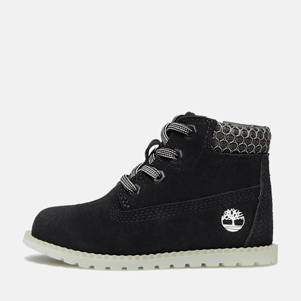 Made with Premium Timberland® leather, our Pokey Pine boots have an OrthoLite® footbed for comfort, rubber outsoles designed to help prevent slippage, and our breathable, water and stain-resistant Timberland® Splash Blaster™ coating, so your little one can explore all the muddy places without ruining their boots.