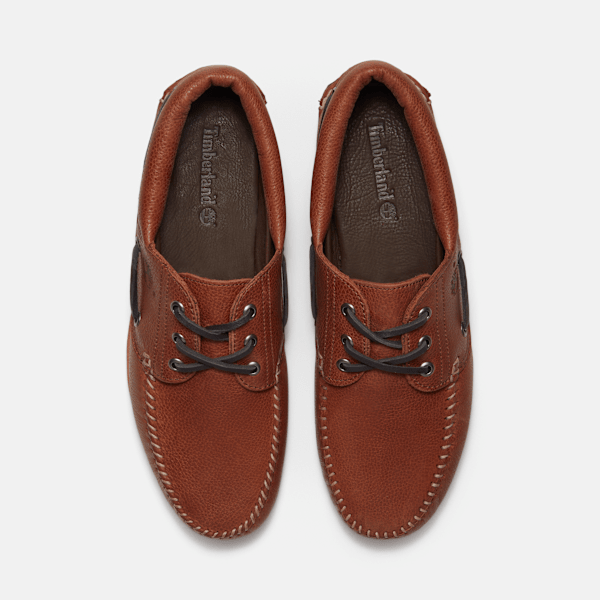 This Men's Timberland® Road Trip 3-Eye Lug Handsewn Boat Shoe takes a classic, crafted style in a new direction inspired by the craftsmanship and fine-stitching of vintage car interiors.