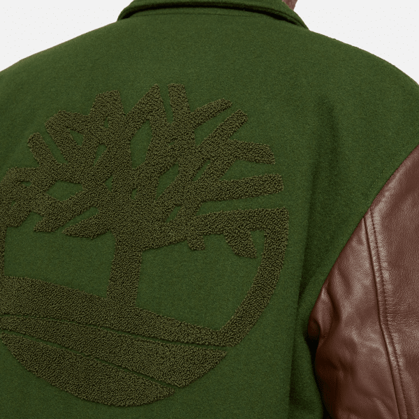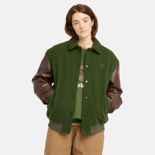 Timberland - All Gender Letterman Jacke aus Leder in Dunkelgrün