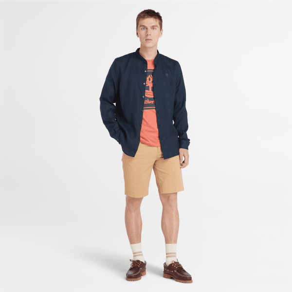 Timberland - Mill Brook Leinenhemd mit koreanischem Kragen für Herren in Dunkelblau