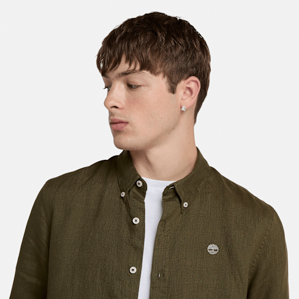 Timberland - Camisa de lino Mill Brook para hombre en verde oscuro | ricciano ESPANA