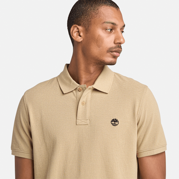 Nuestro polo de manga corta de piqué Millers River presenta un corte recto, puños de canalé y el logotipo del árbol de Timberland® bordado.
