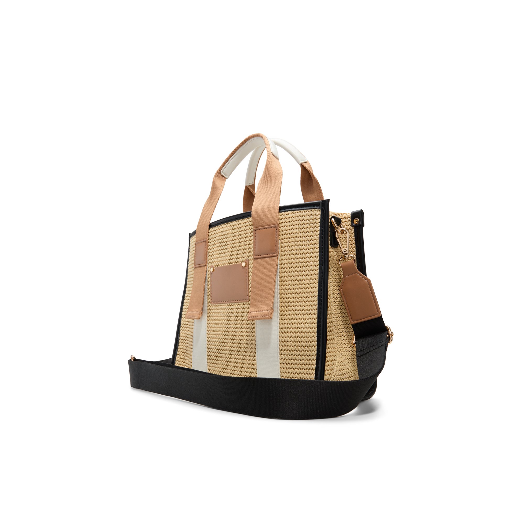 Featuring chic color-blocking handles and a removable, adjustable crossbody strap, this textured satchel offers ultimate versatility for any journey, whether you're lounging by the beach or exploring the city.