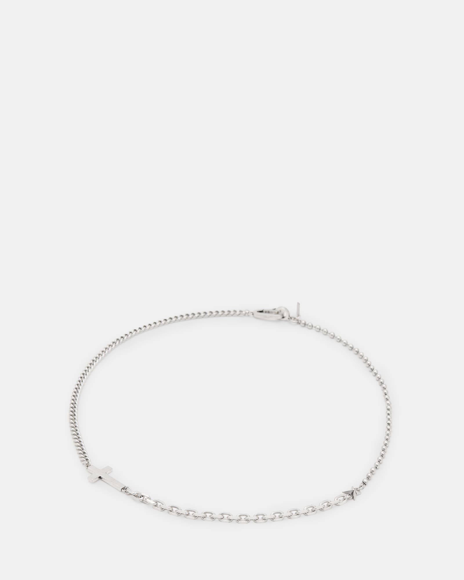 AllSaints Sterling Silver Layden Mixed Chain Cross Necklace