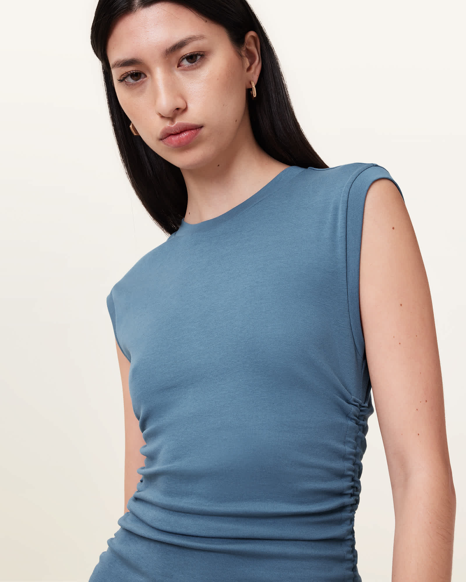 AllSaints Sonny Drawcord Side Mini Dress,, Flint Stone Blue | ricciano IRELAND