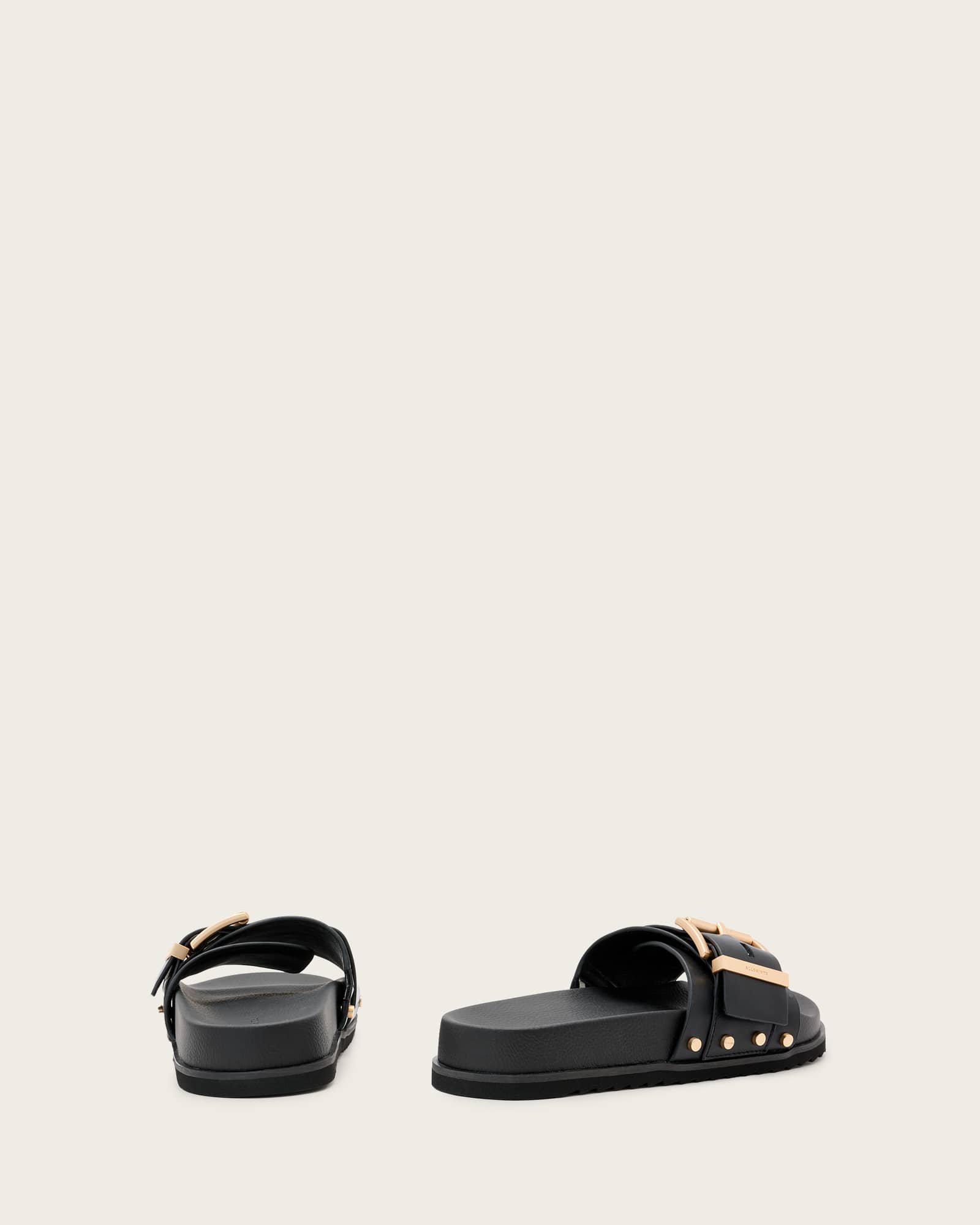 AllSaints Ellie Studded Buckle Leather Sliders,, Black | ricciano IRELAND