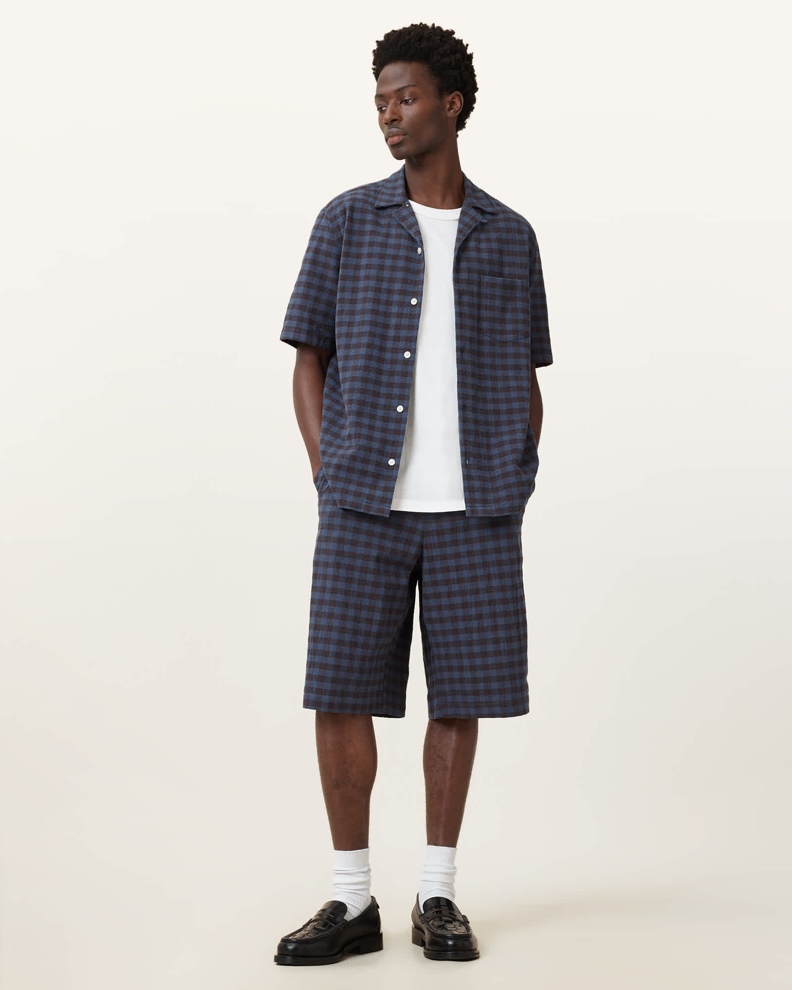 AllSaints Cooper Check Shorts,, Amalfi Blue | ricciano IRELAND