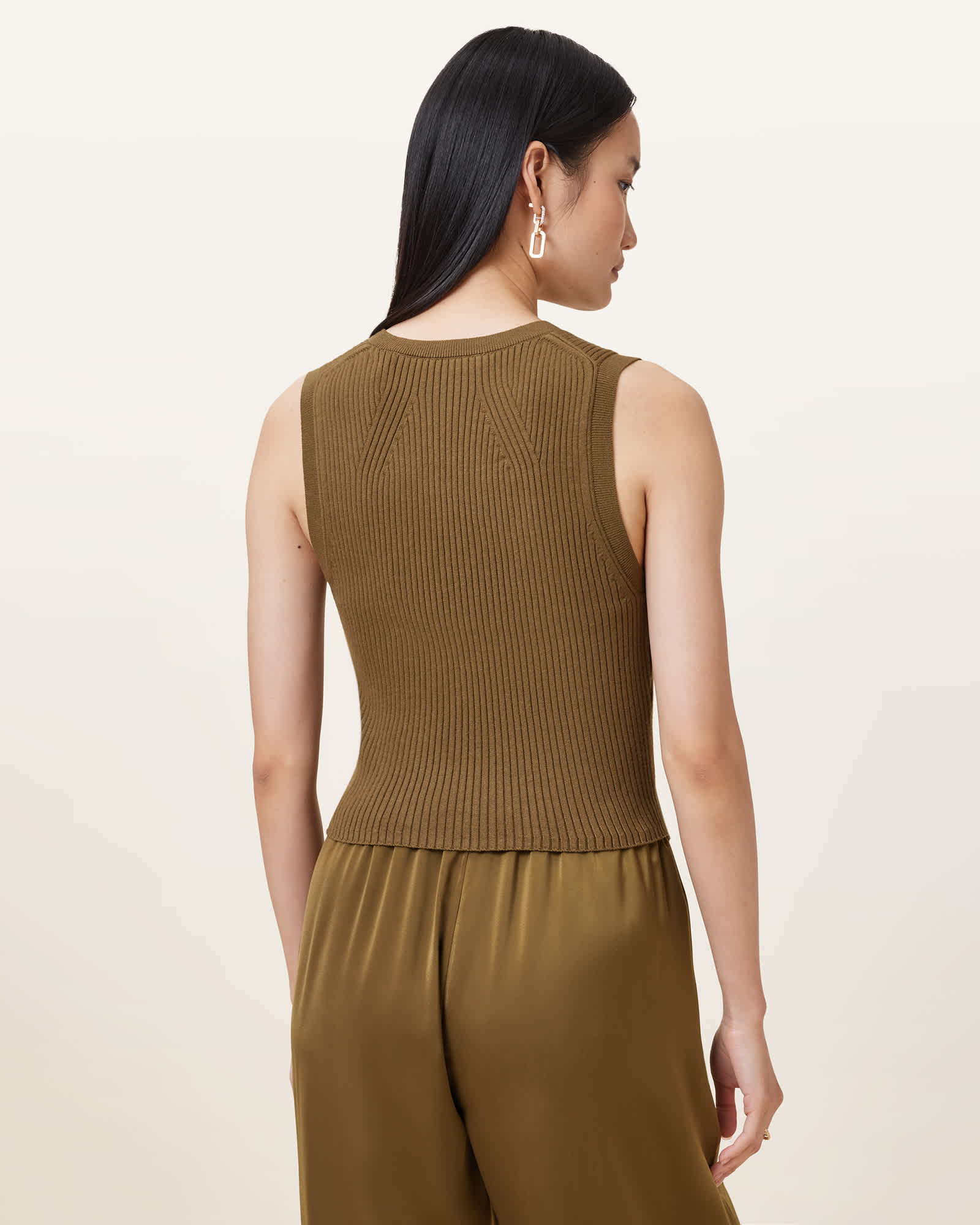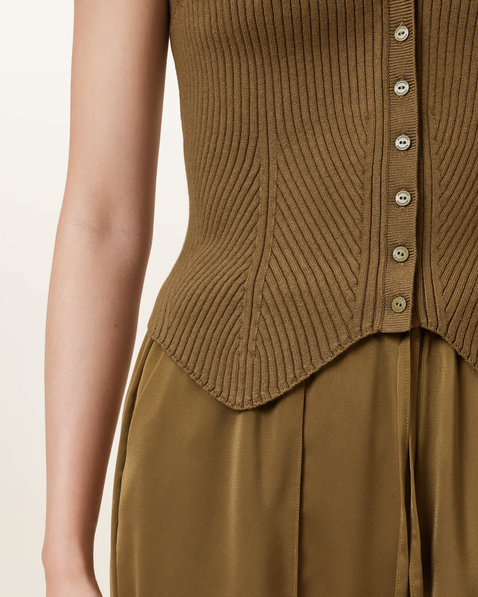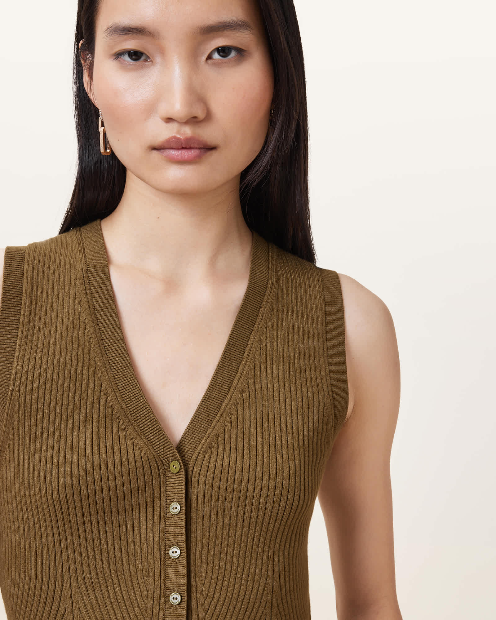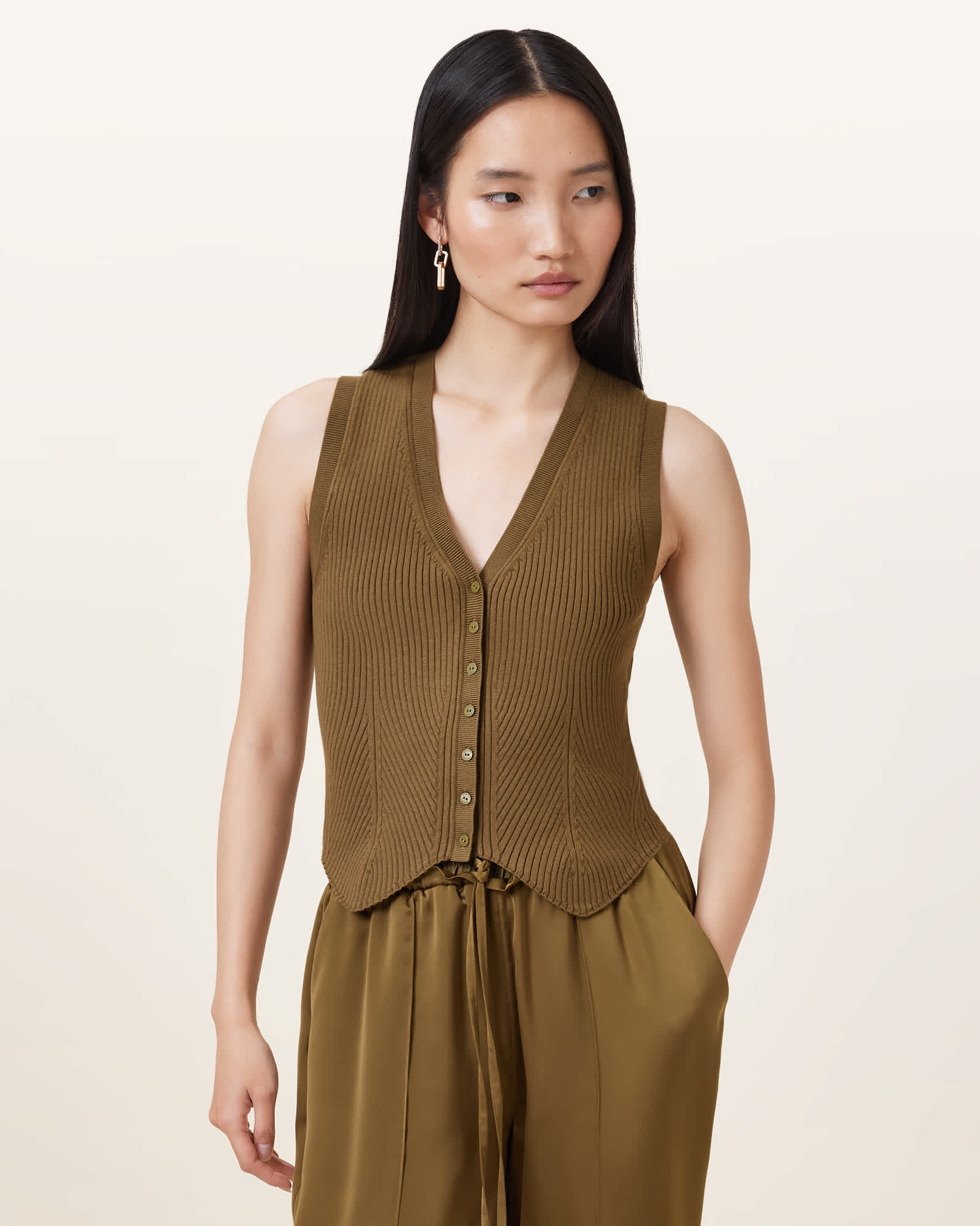 AllSaints Cruz Ribbed Knitted Waistcoat,, Fir Green | ricciano IRELAND