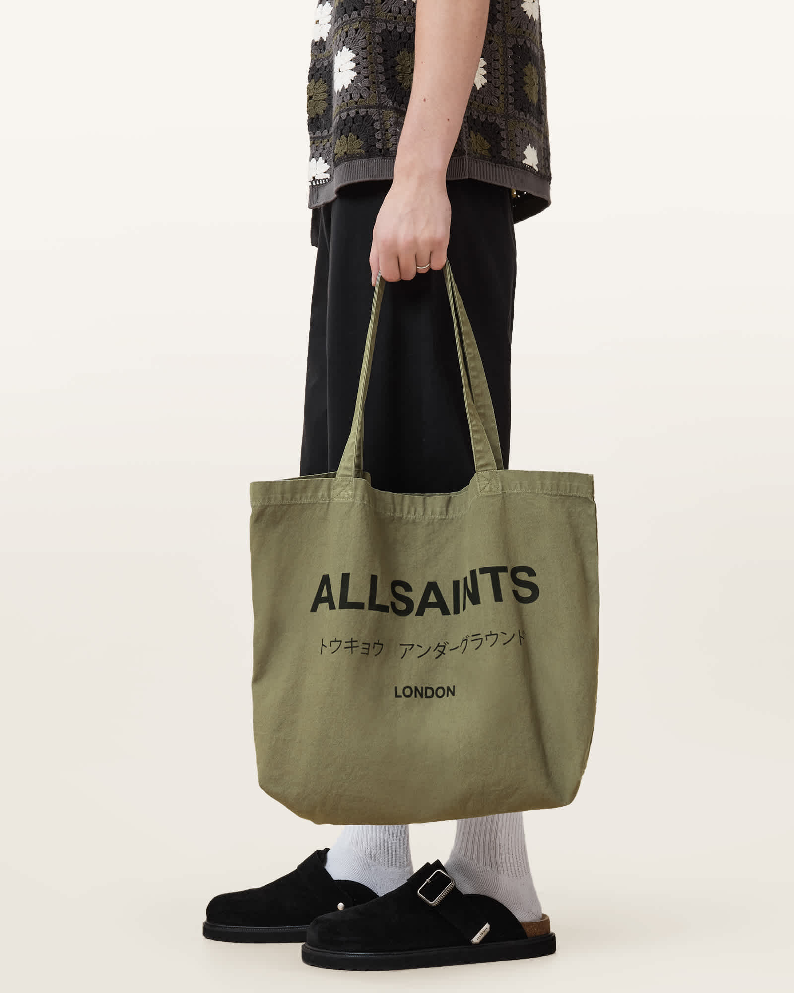 AllSaints Main: 50% Cotton, 50% Cotton (Organically Grown) Underground Logo Printed Tote Bag | ricciano IRELAND