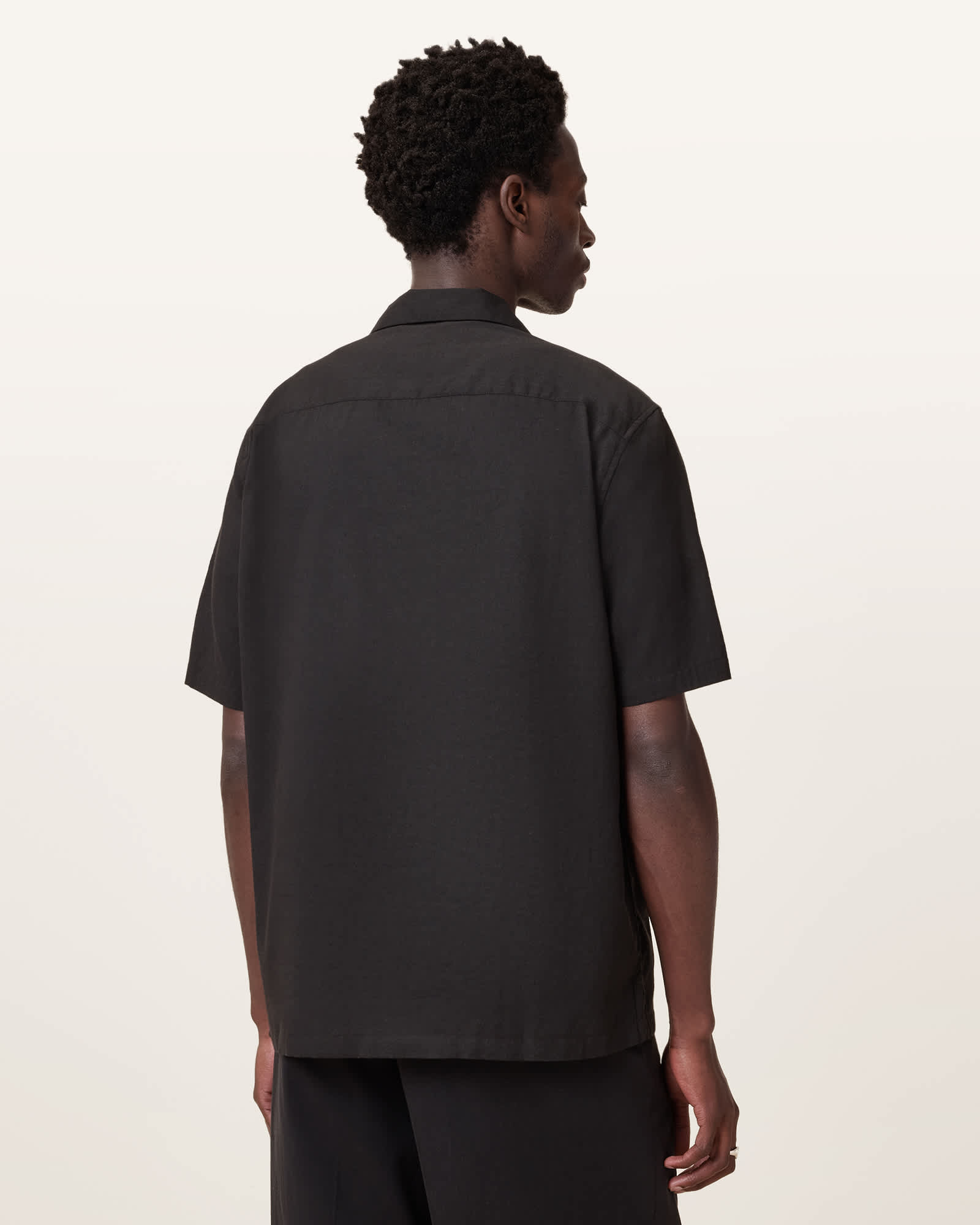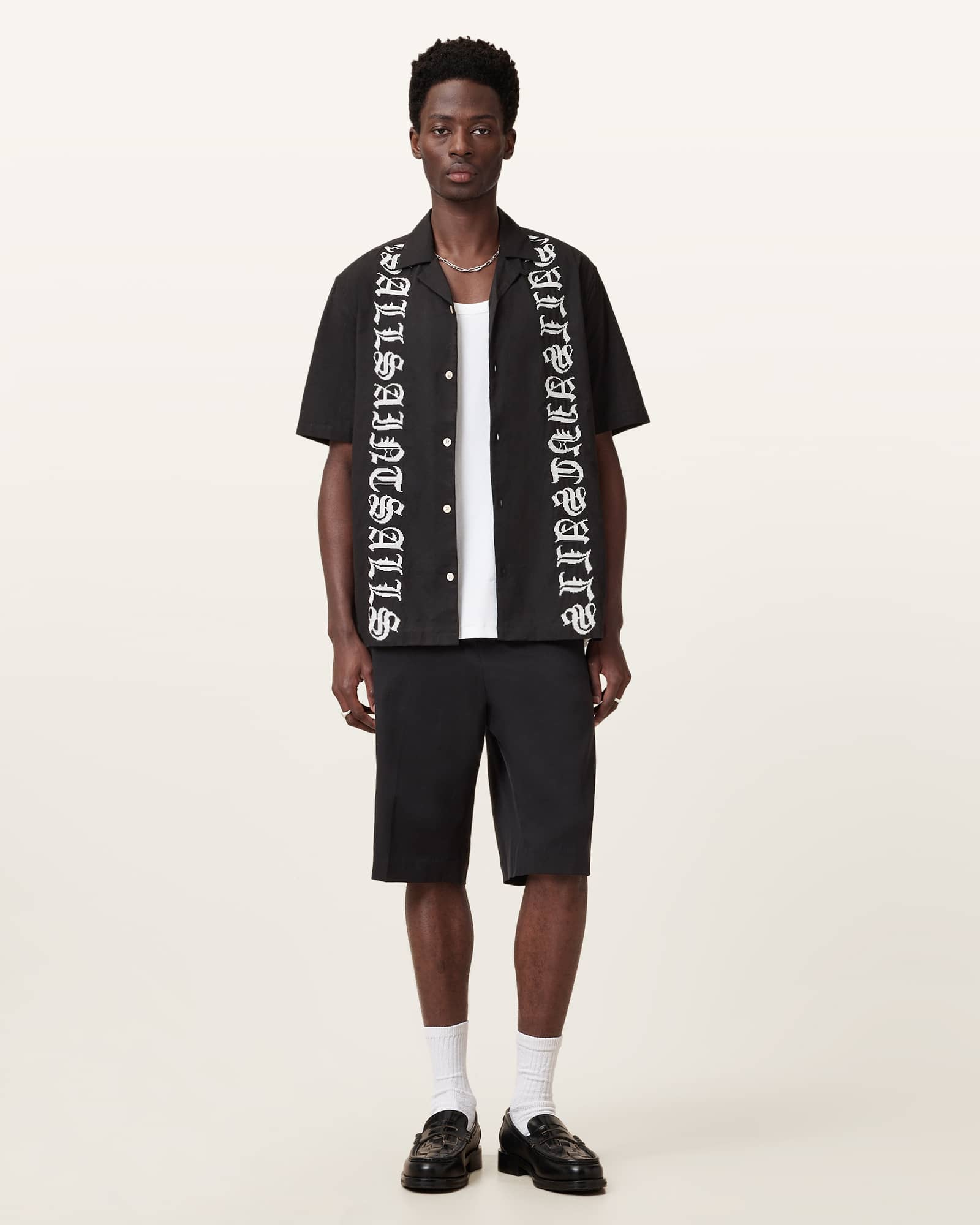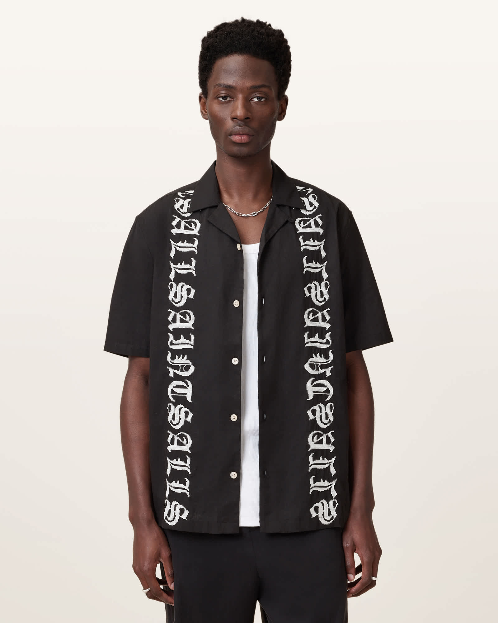 AllSaints Scripture Short Sleeve Textured Shirt,, Faded Black | ricciano IRELAND