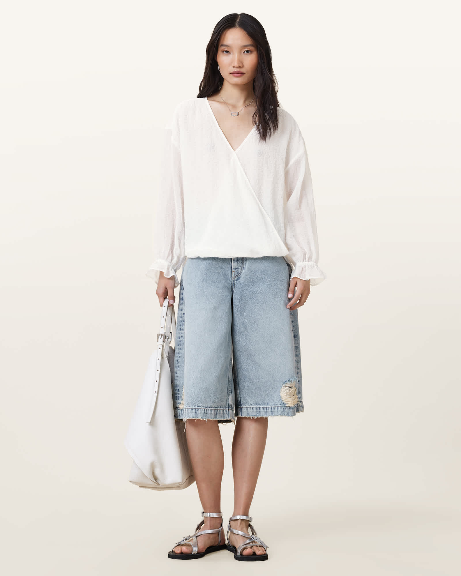 AllSaints Penny Wrap Over Shirt,, Chalk White | ricciano IRELAND