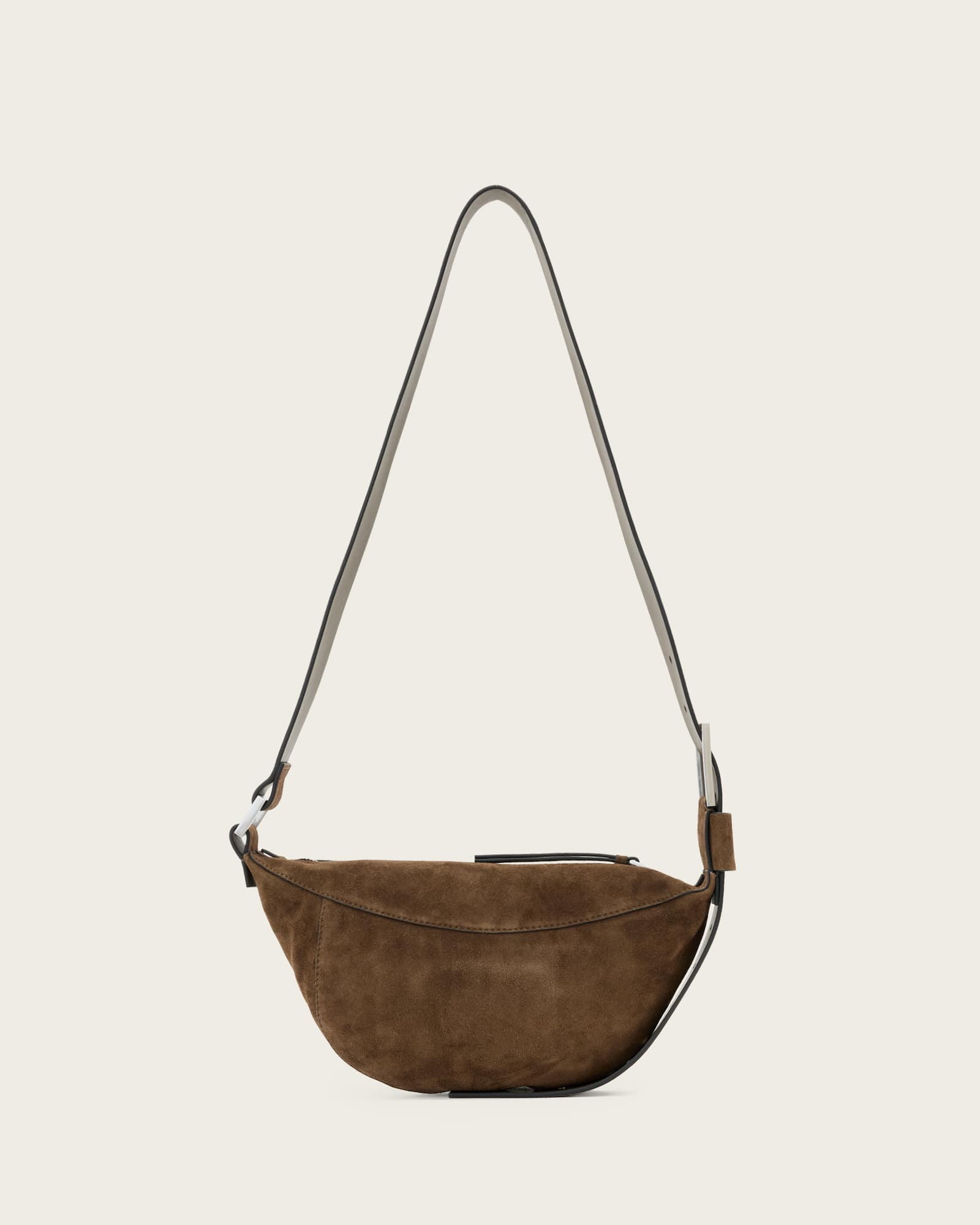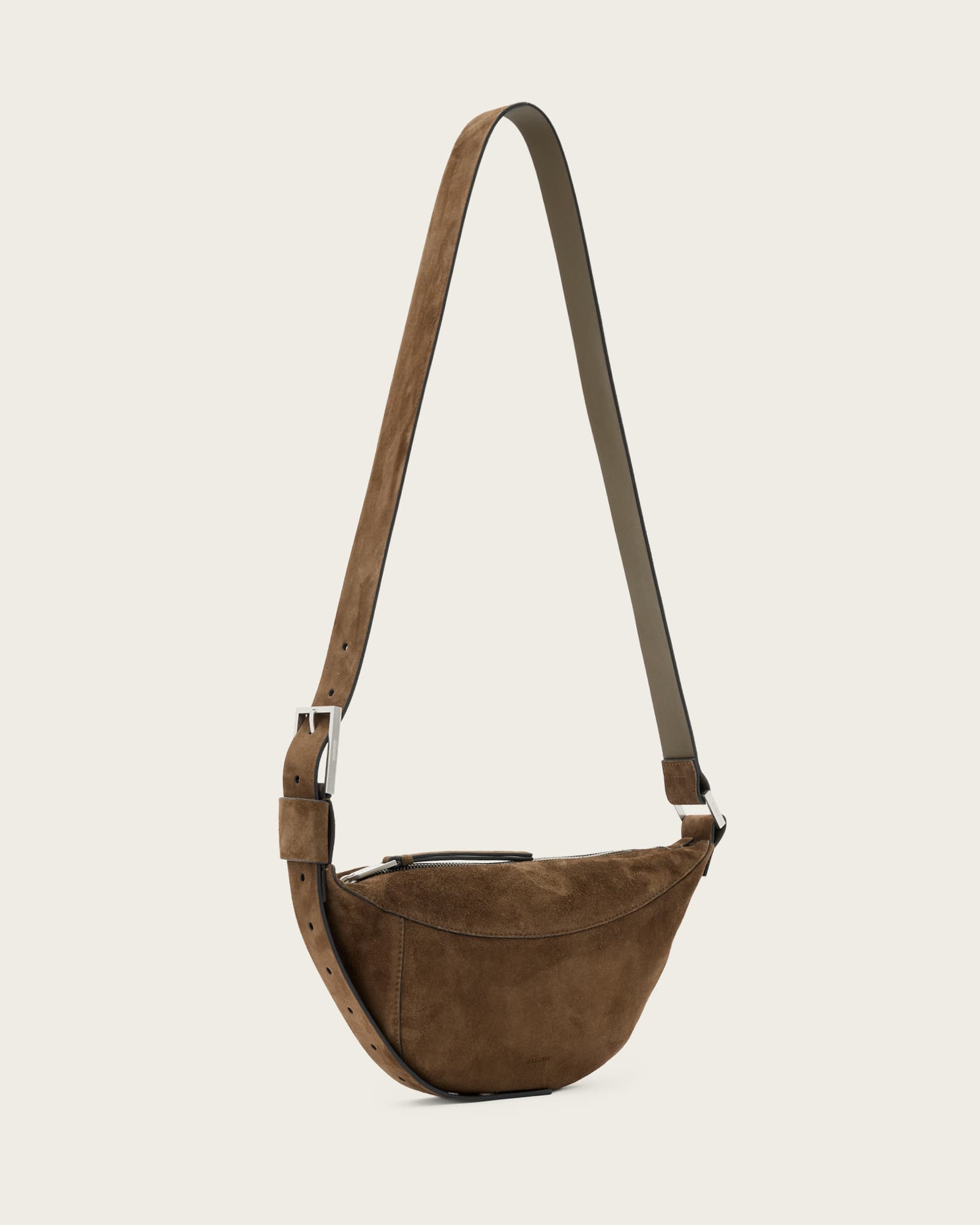 AllSaints Luna Slouchy Suede Crossbody Bag,, Fango Brown | ricciano IRELAND