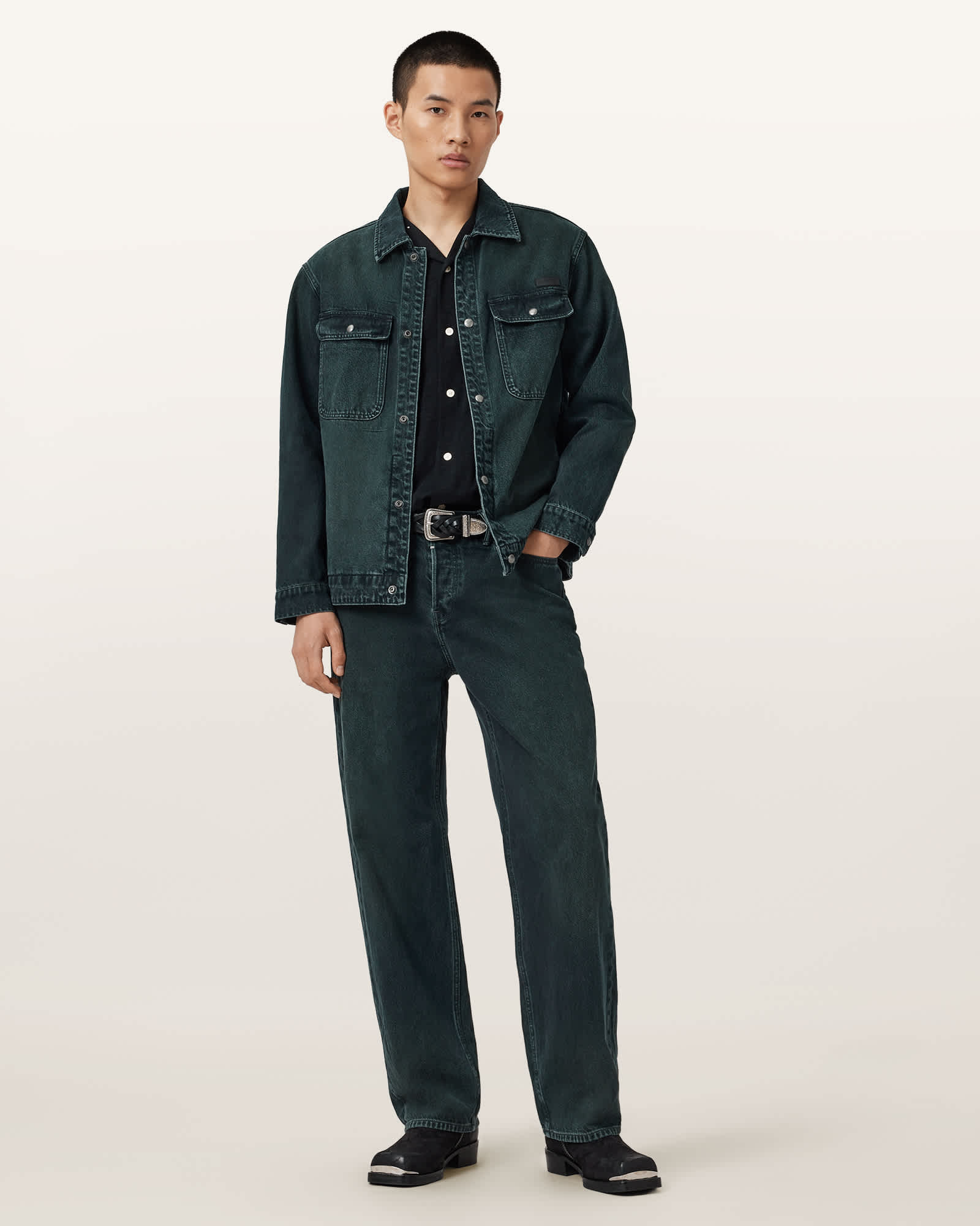 AllSaints Cotton Robson Short Sleeve Ramskull Shirt