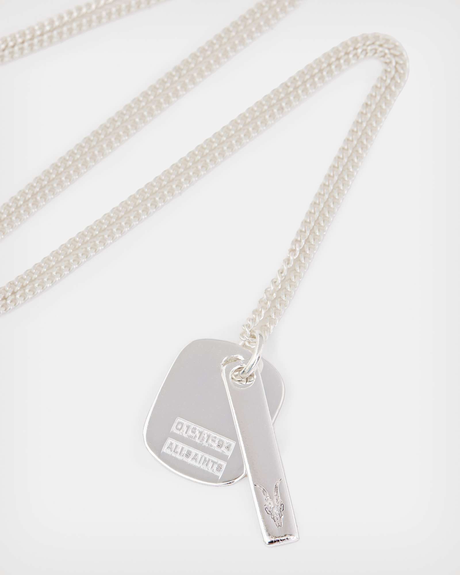 Necklace Lobster clasp closure Dog tag pendant AllSaints engraved signature Sterling silver