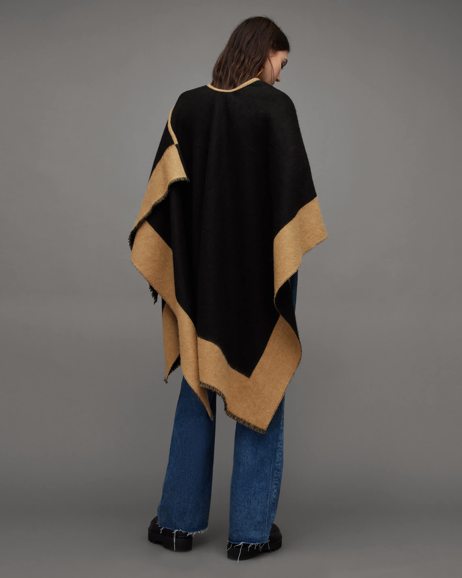AllSaints Women's Wool Saints Border Logo Wool Ruana Scarf | ricciano IRELAND