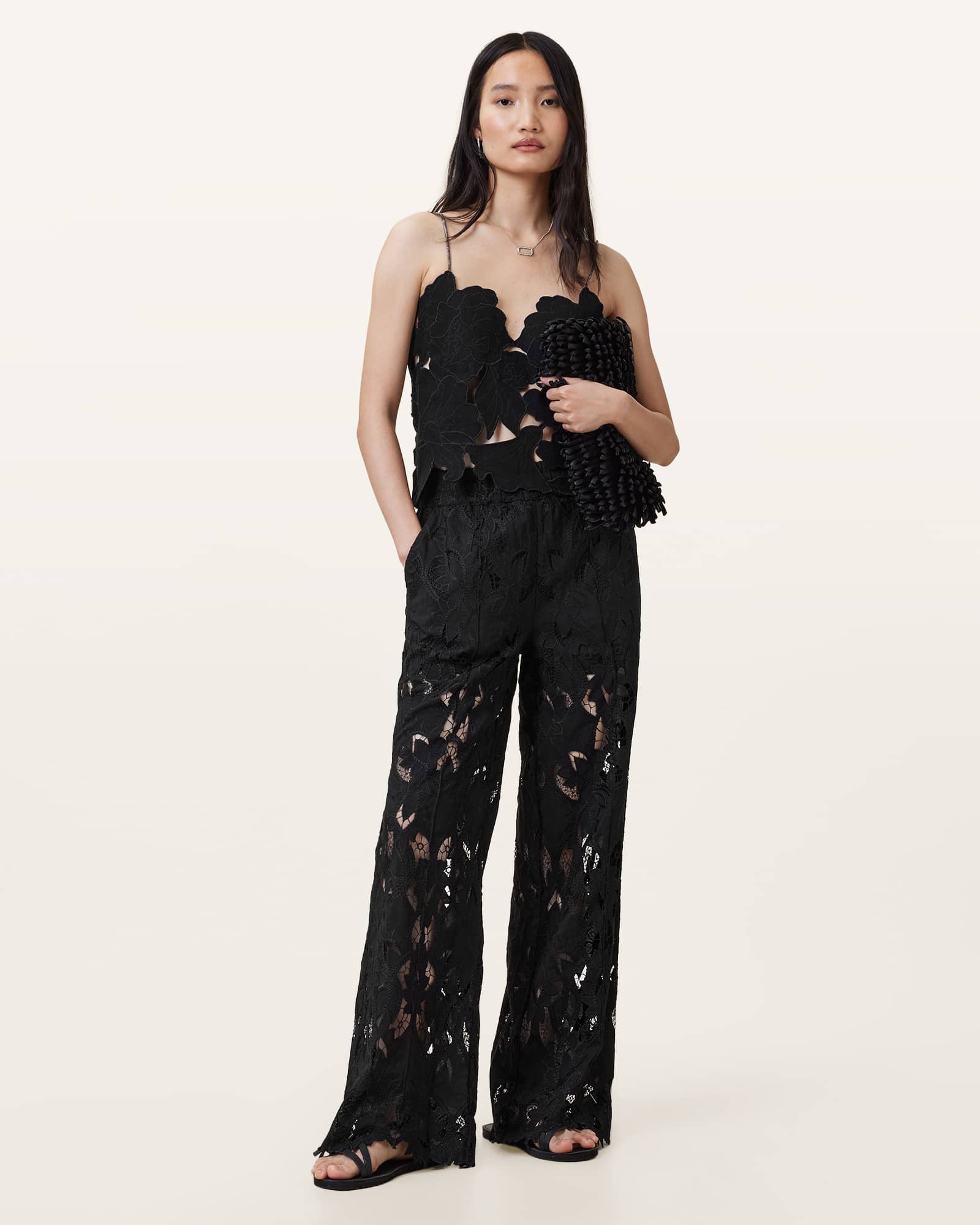 AllSaints Charli Embroidered Straight Fit Pants