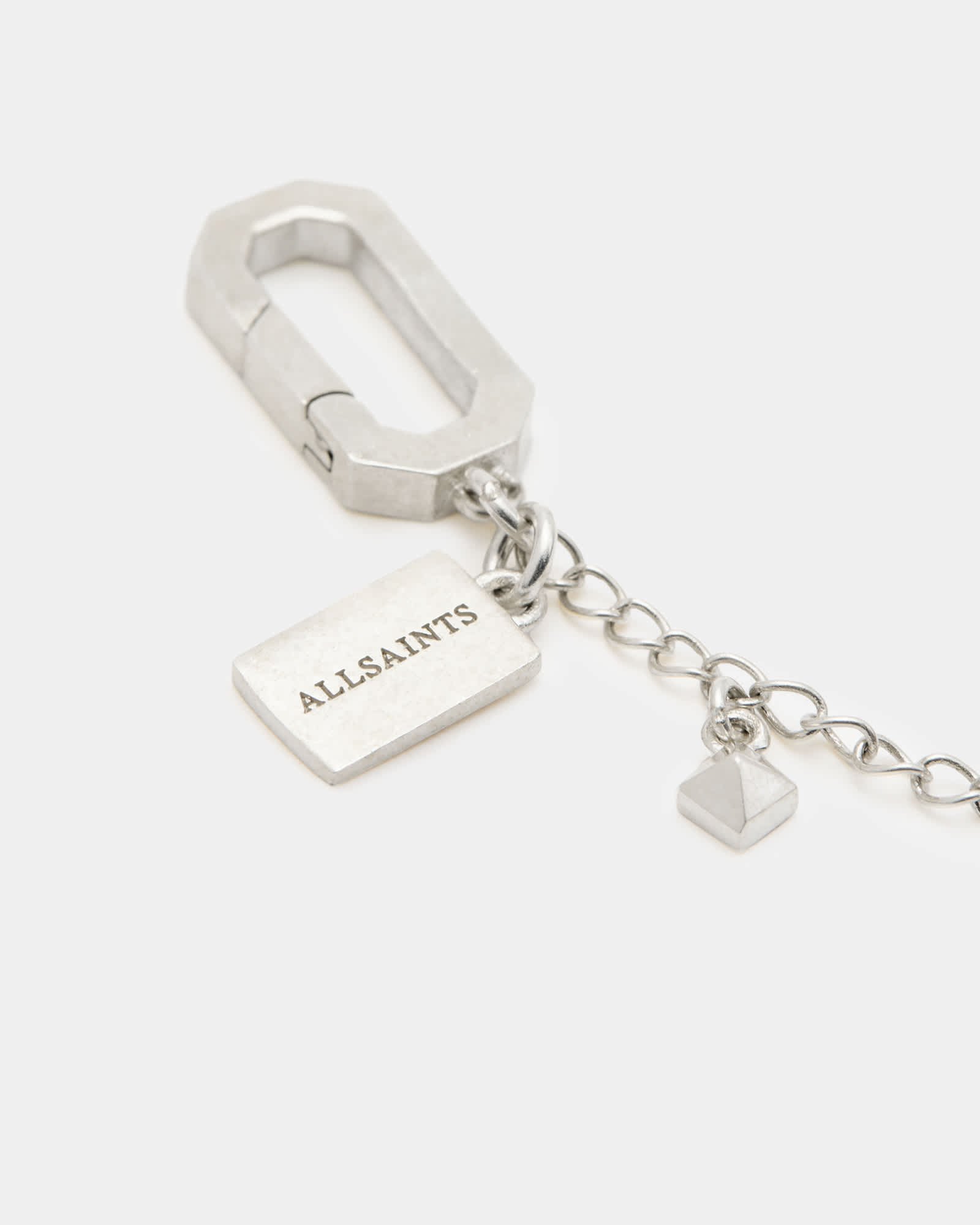Bracelet Lobster clasp Adjustable chain Hexagon carabiner closure All Saints engraved signature Silver tone finish