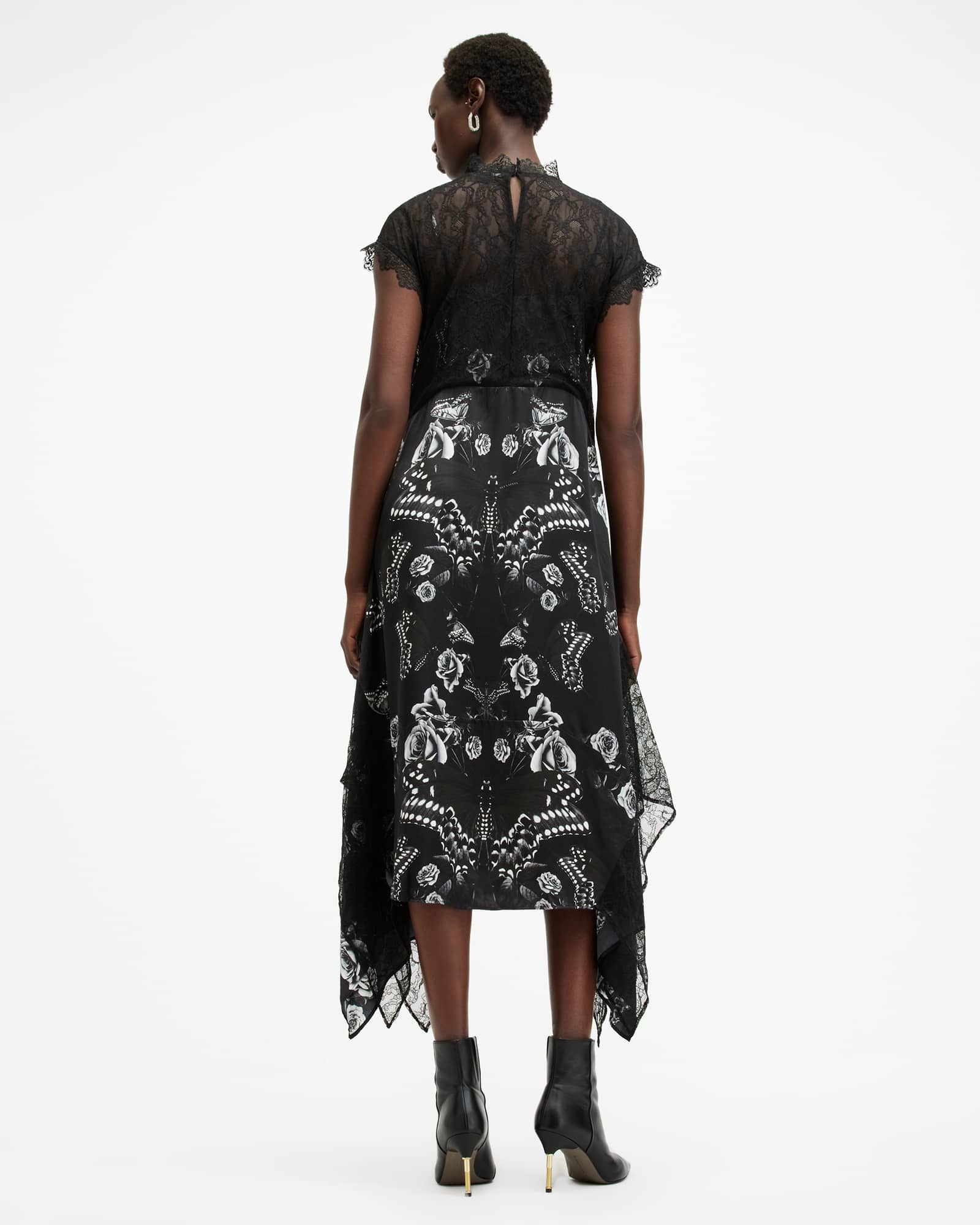 The Gian Dress features our statement prints on a tonal base with delicate lace panel work.