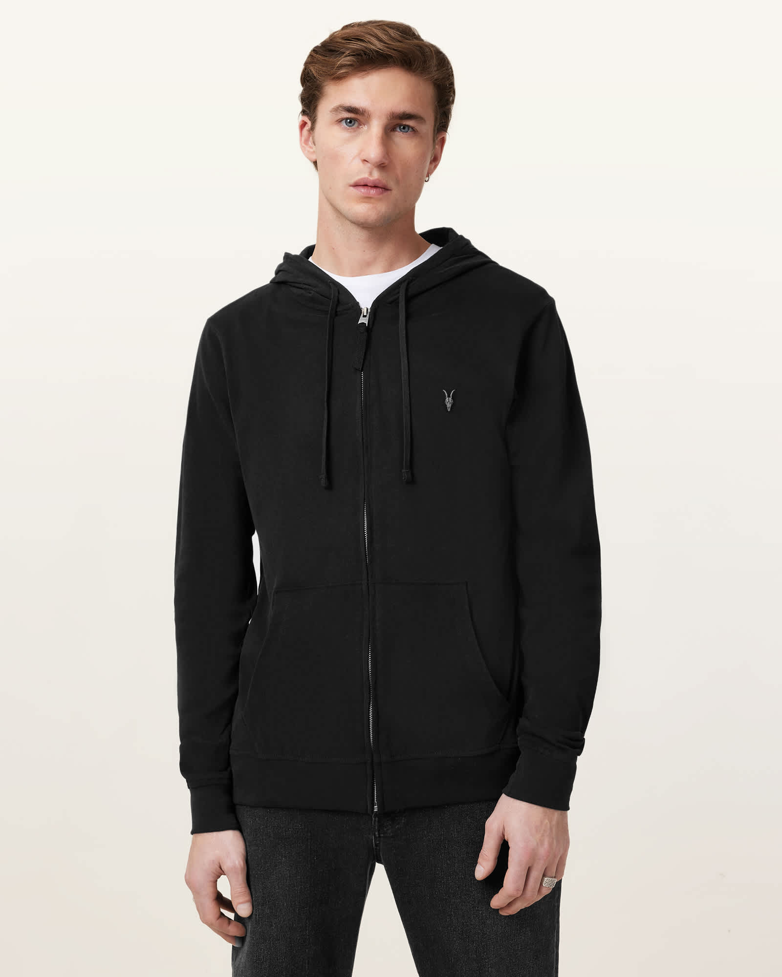 AllSaints Brace Zip Up Brushed Cotton Ramskull Hoodie