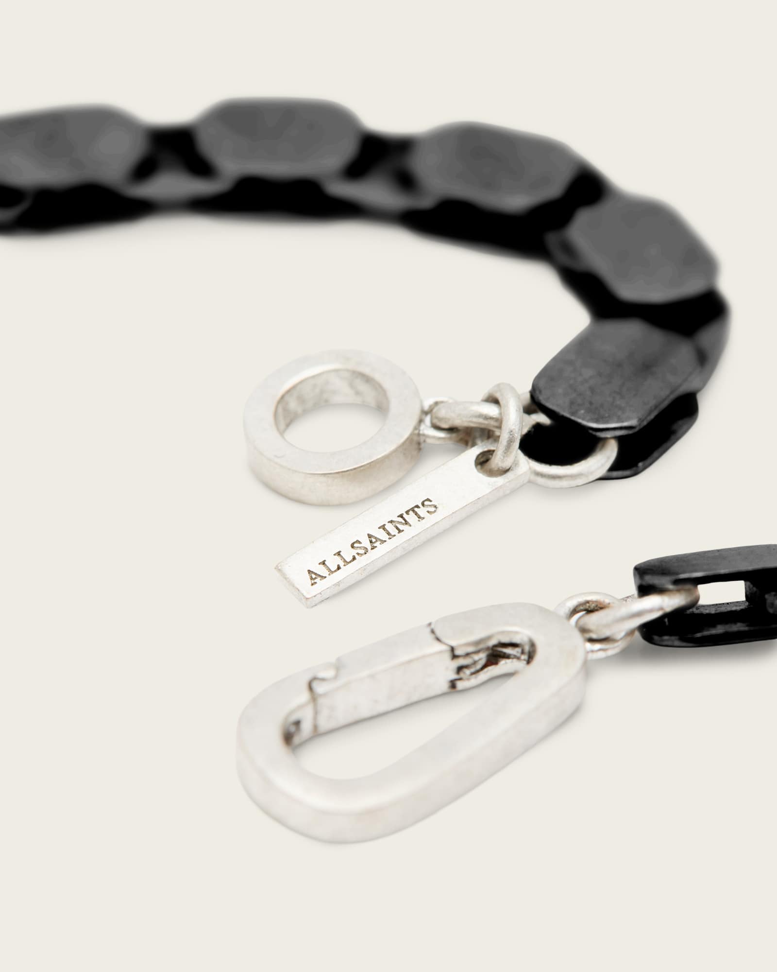 Necklace Carabiner closure Engraved All Saints logo Hexagon-shaped chain Silver-tone finish