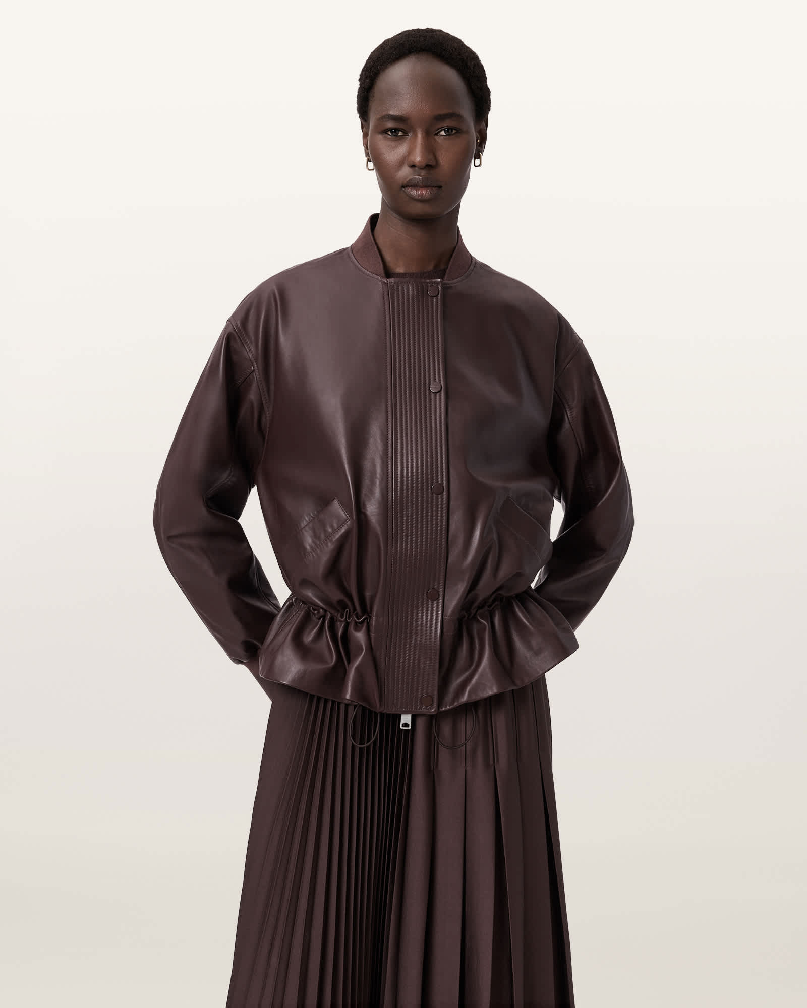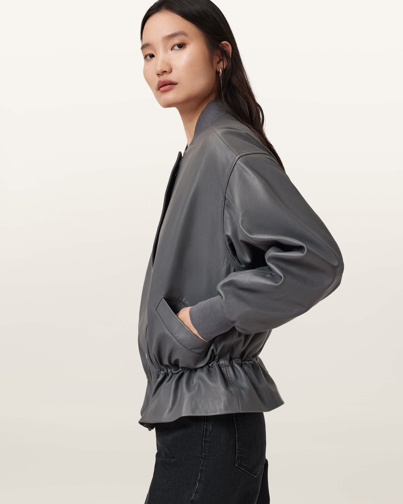AllSaints Sofi Drawstring Leather Bomber Jacket | ricciano UNITED STATES
