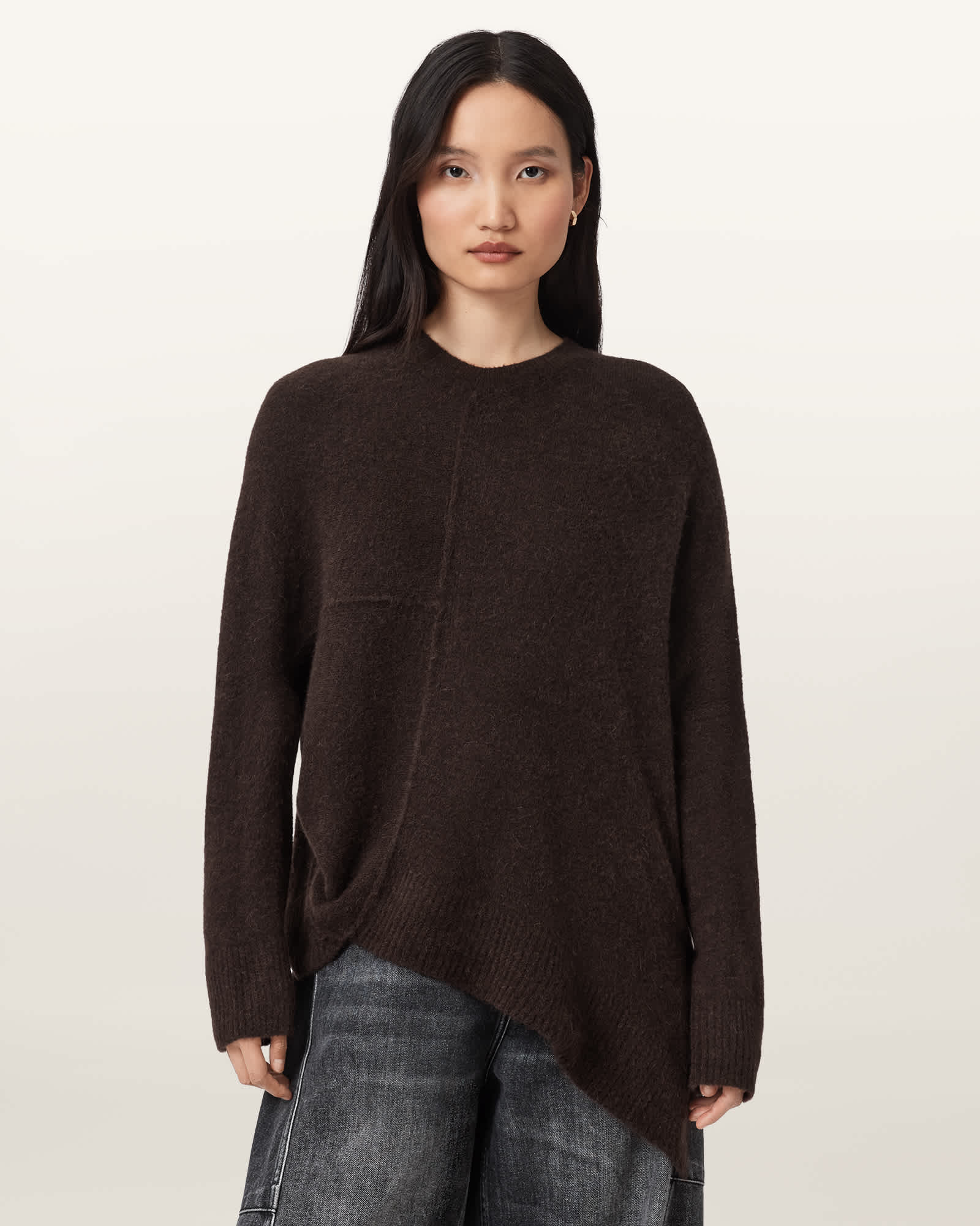 Pullover Crew neck Long sleeves Asymmetric panel design with exposed seams The model is 5'9.5" and is wearing size Medium