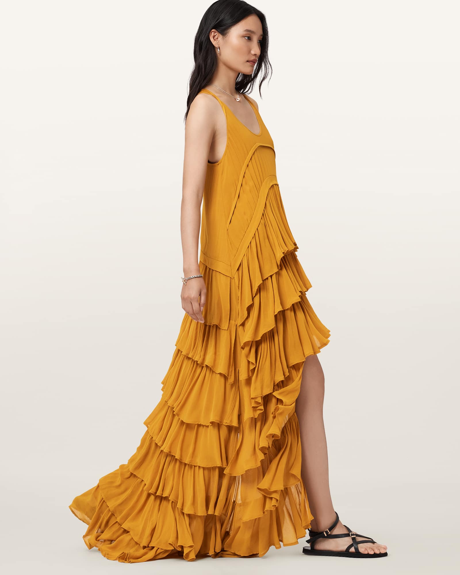 AllSaints Cavarly Tiered Ruffle Maxi Dress | ricciano UNITED STATES