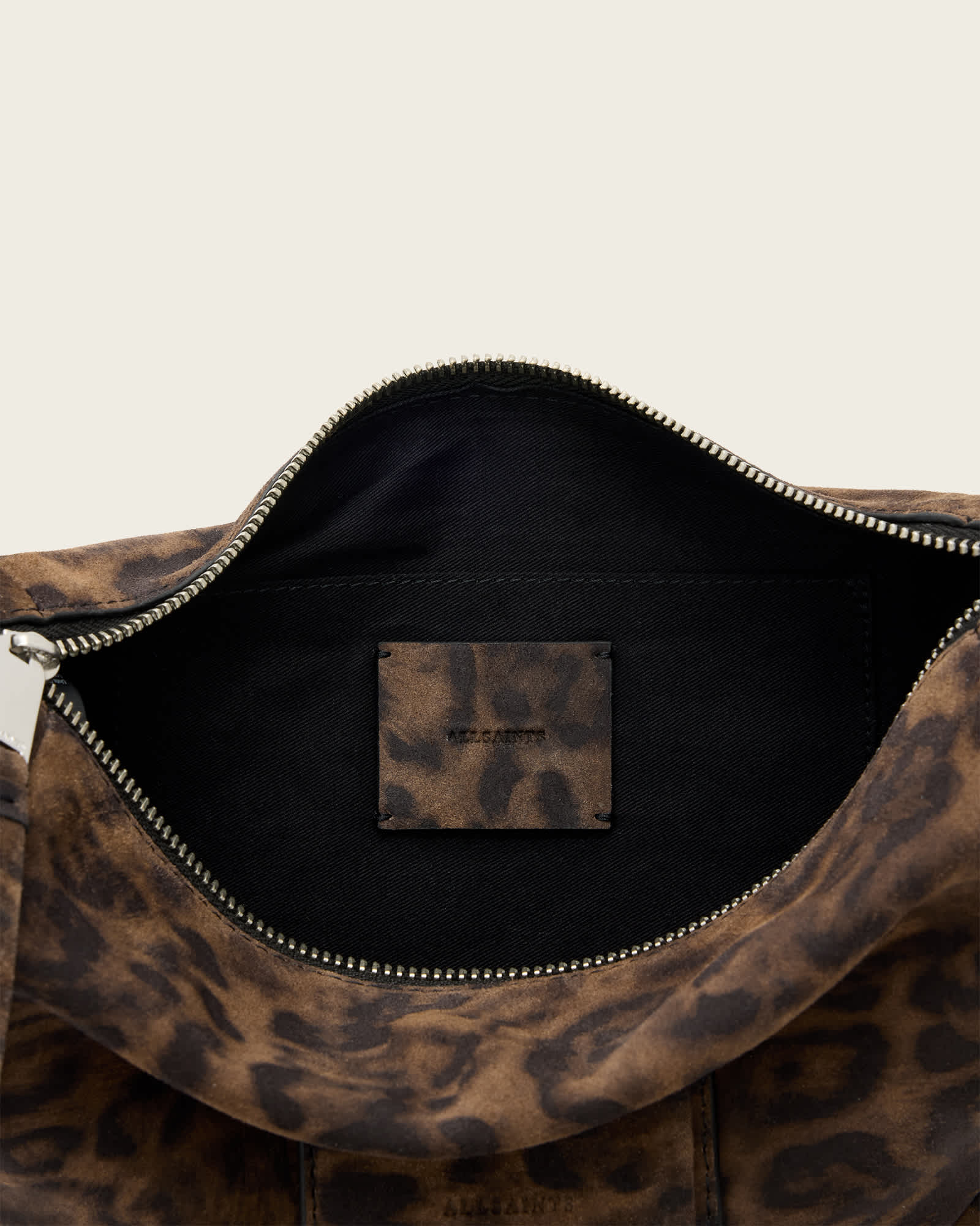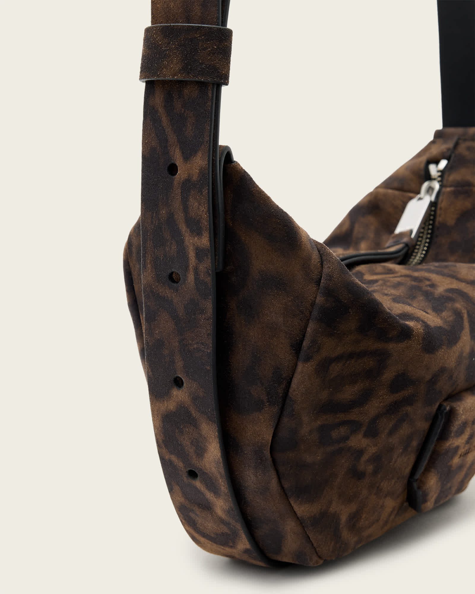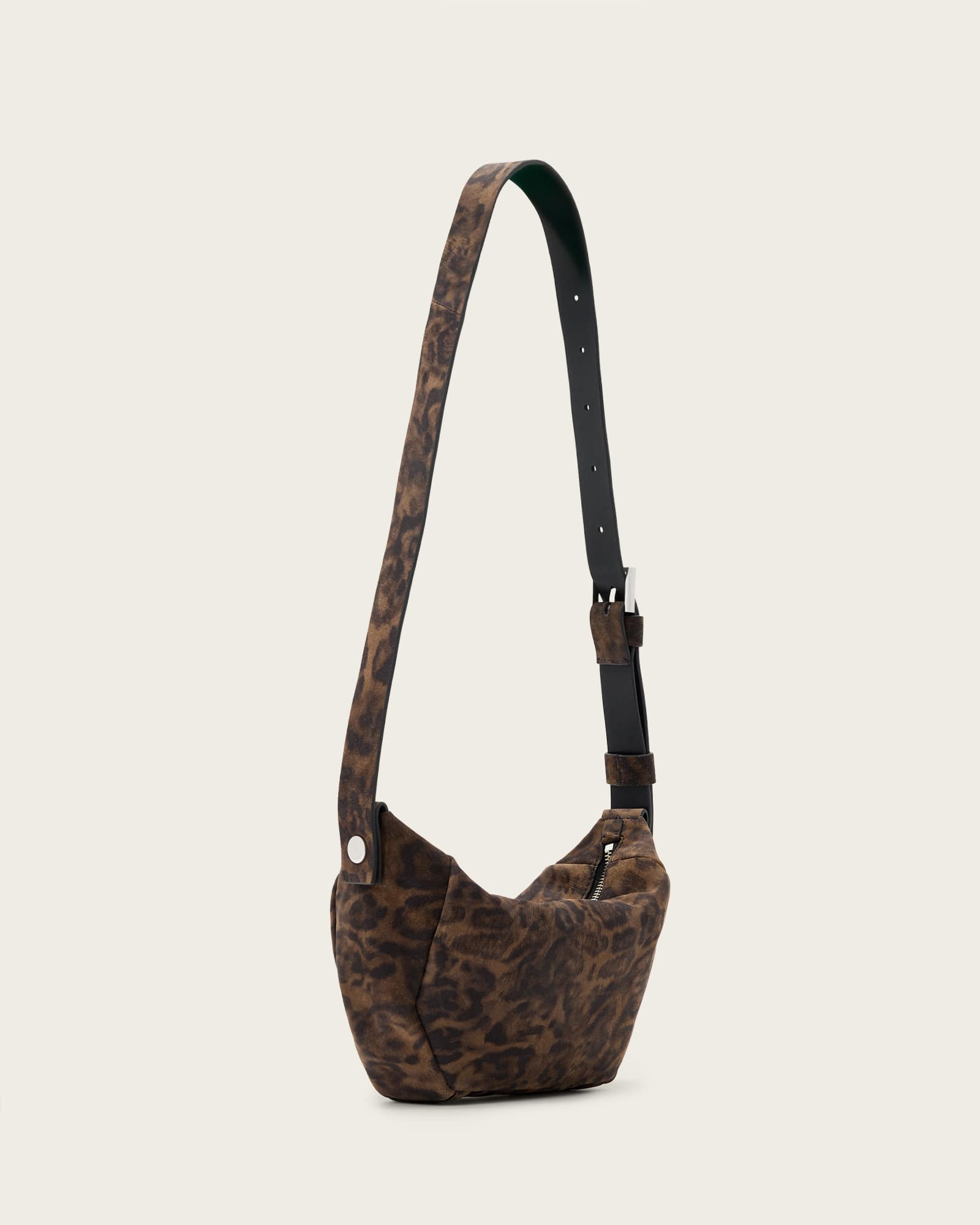 AllSaints Madea Leopard Print Suede Crossbody Bag | ricciano UNITED STATES