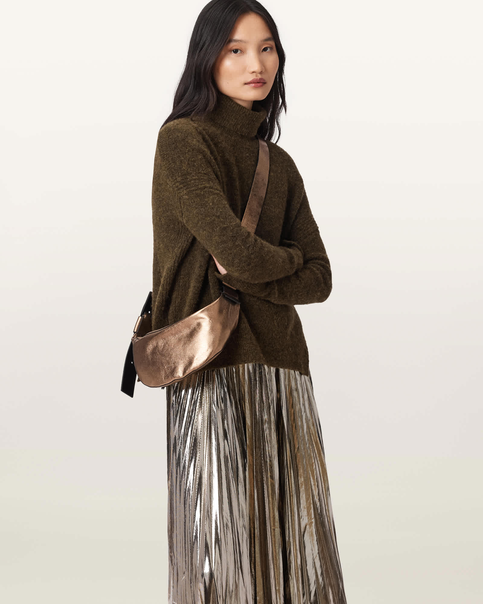 AllSaints Luna Slouchy Leather Crossbody Bag