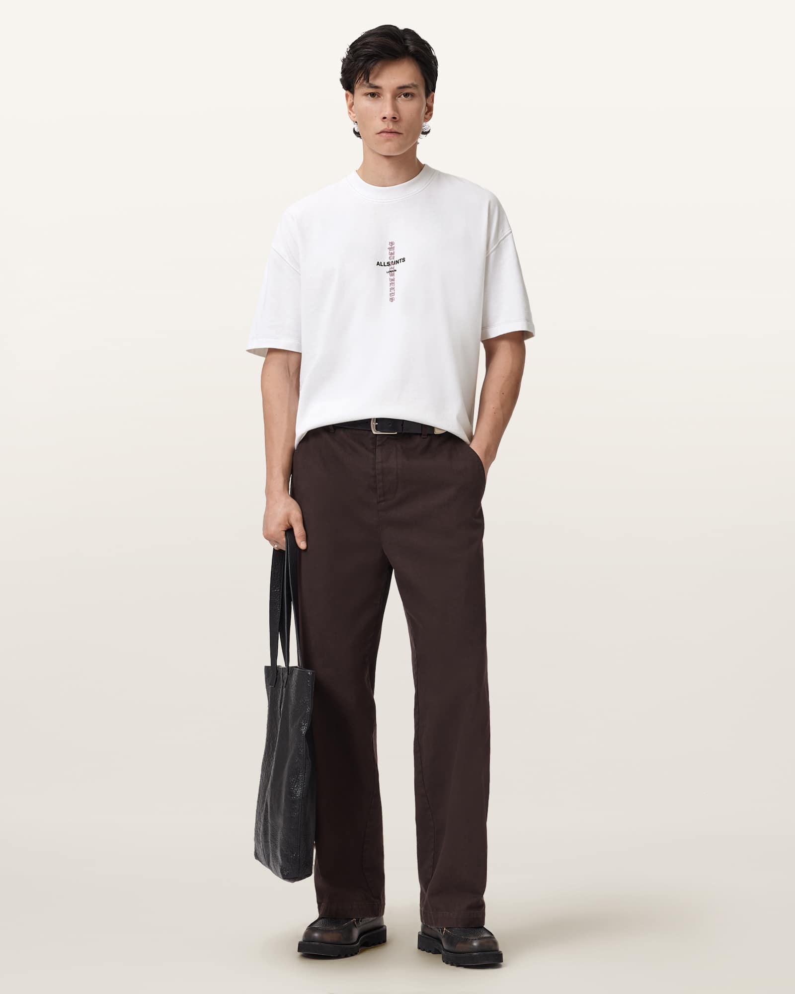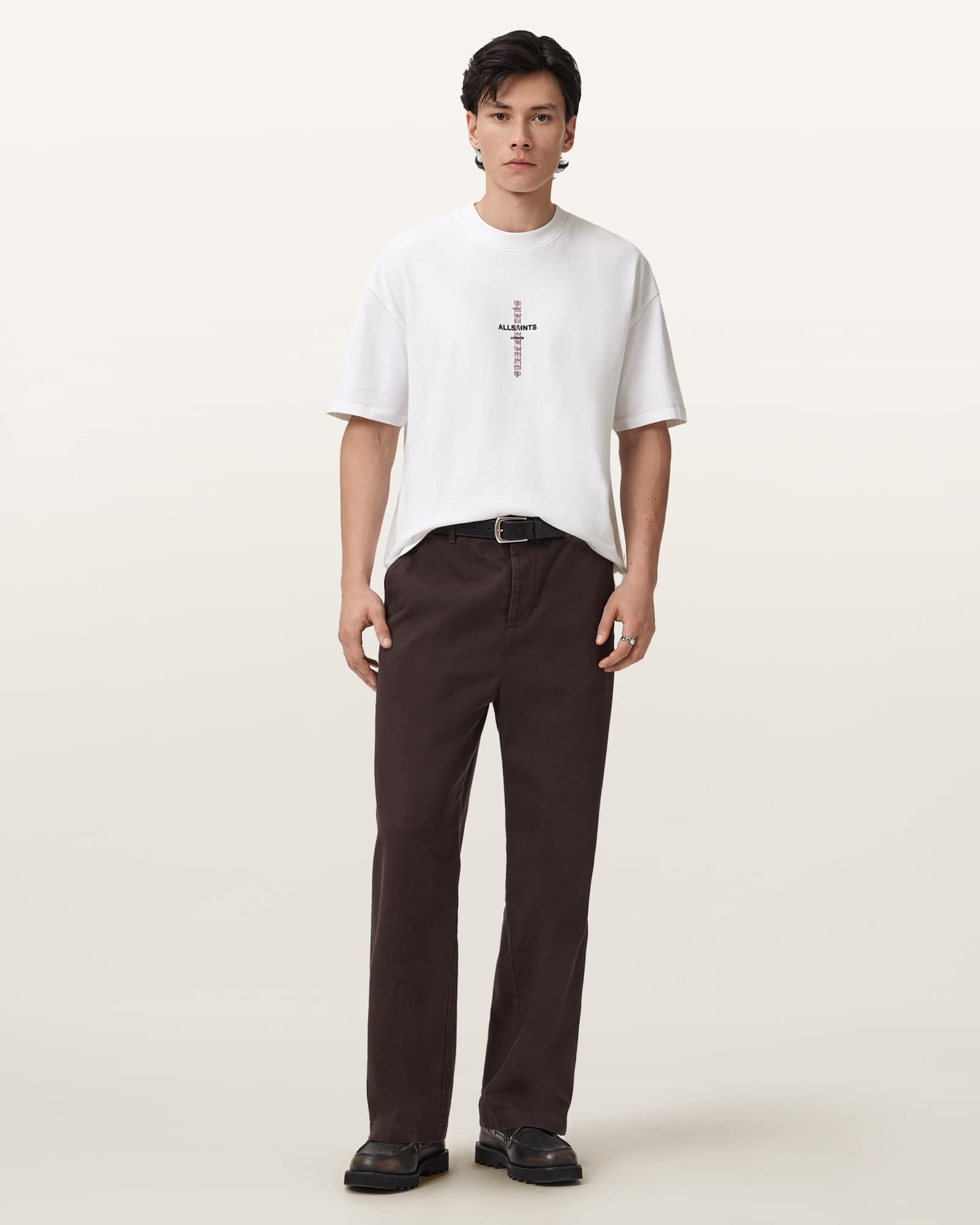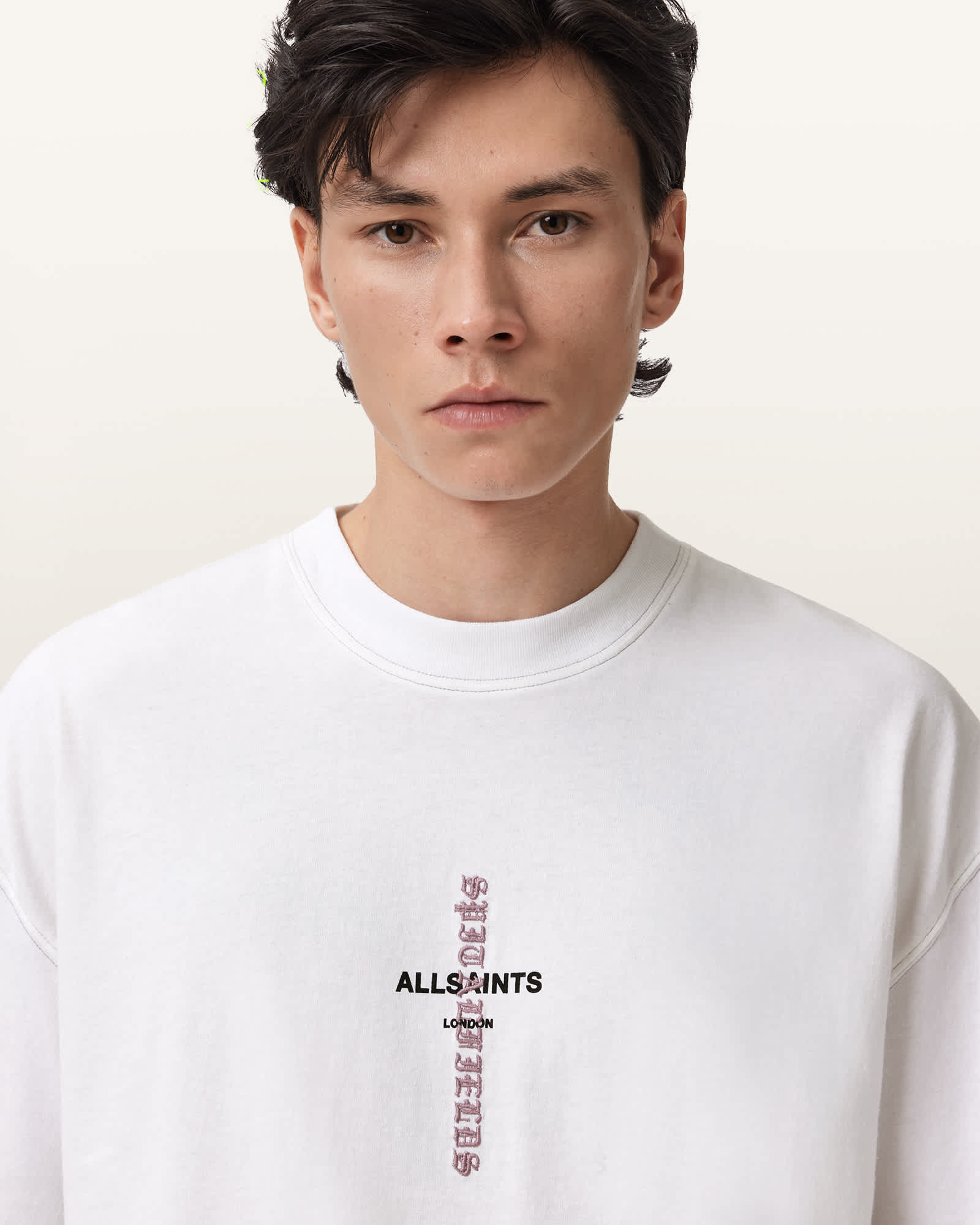 Pullover Crew neck Short sleeves Twin needle stitch detailing at neck, cuffs and hem'All Saints/London' screenprinted'Spitalfields' embroidered Heavyweight The model is wearing size Medium