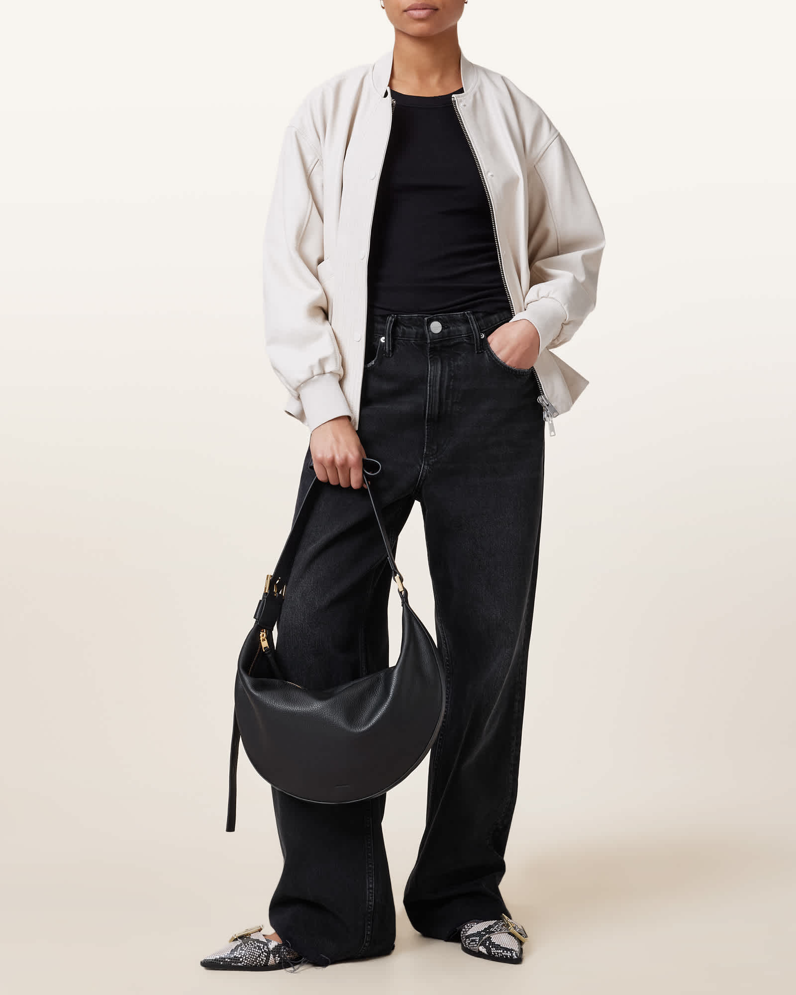 AllSaints Half Moon Leather Crossbody Bag