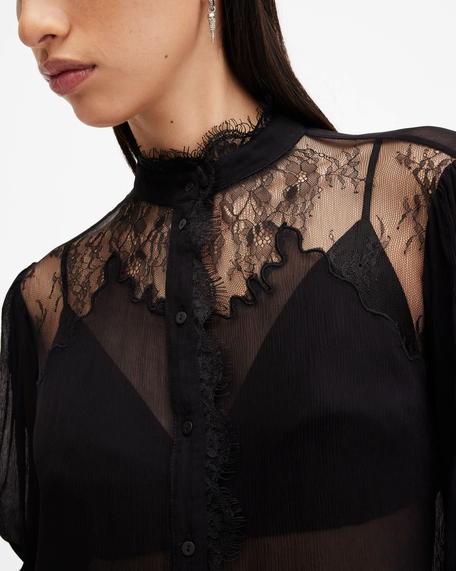 AllSaints Rory Relaxed Fit Lace Shirt