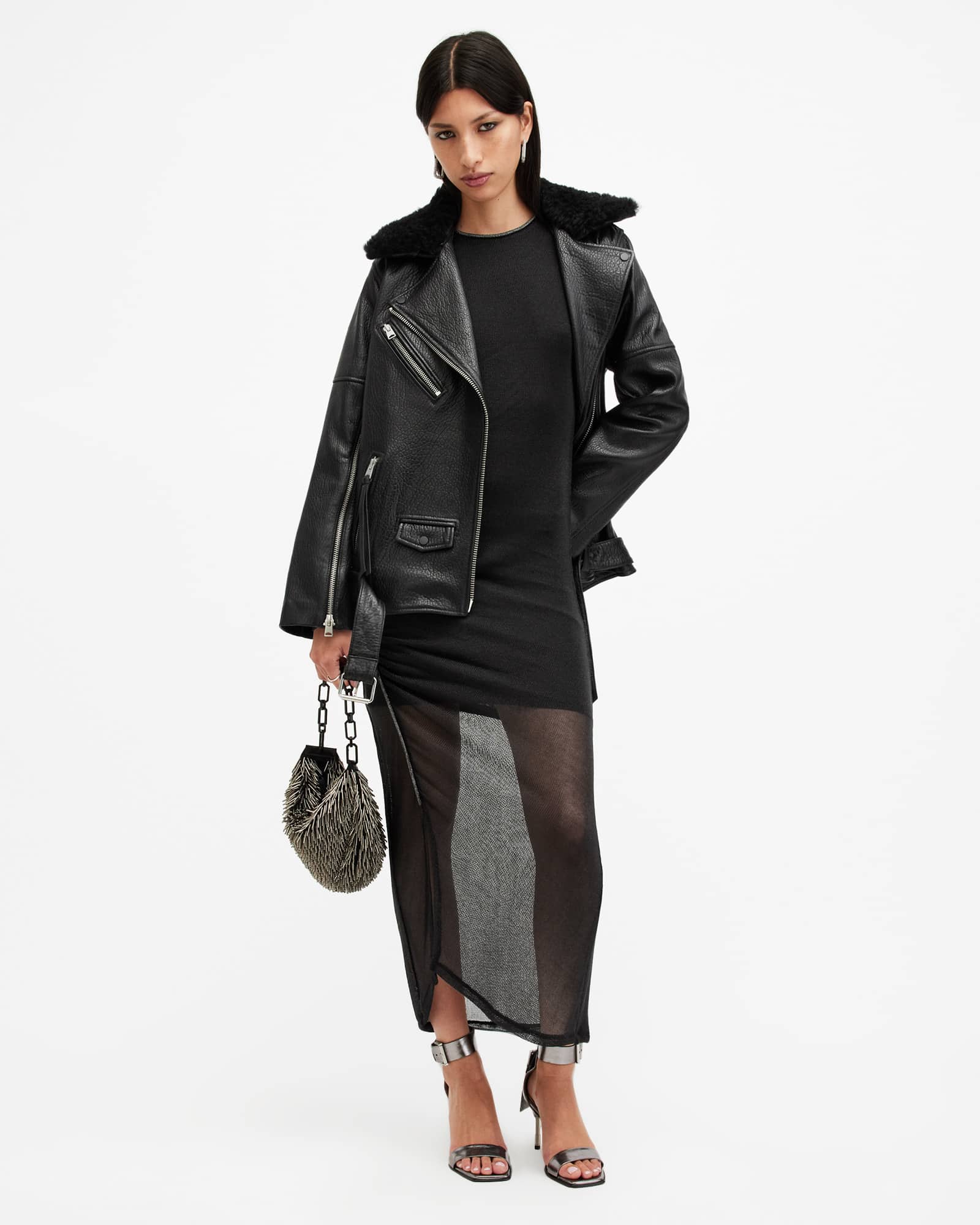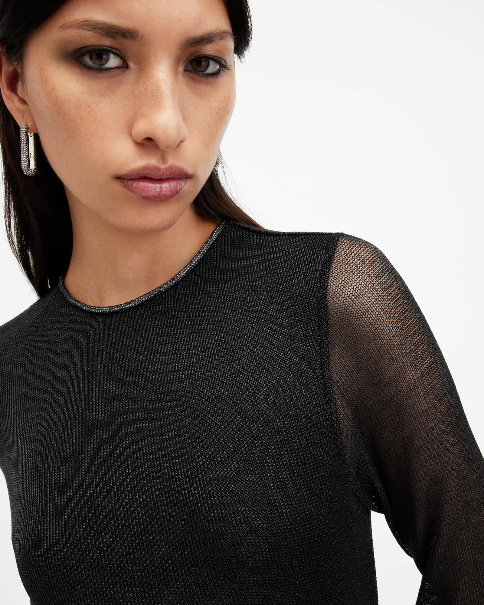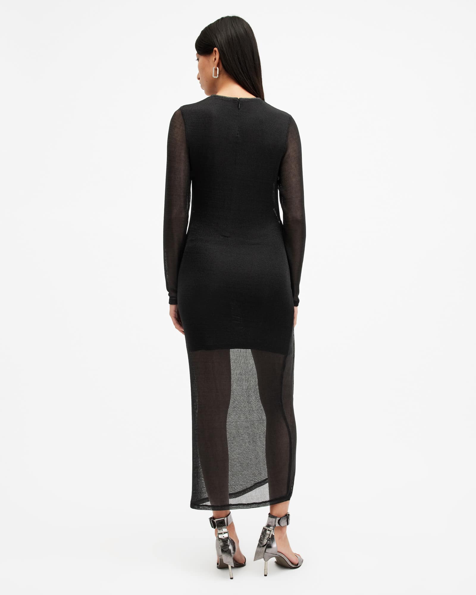 AllSaints Nora Ruched Sparkle Midi Dress | ricciano UNITED KINGDOM