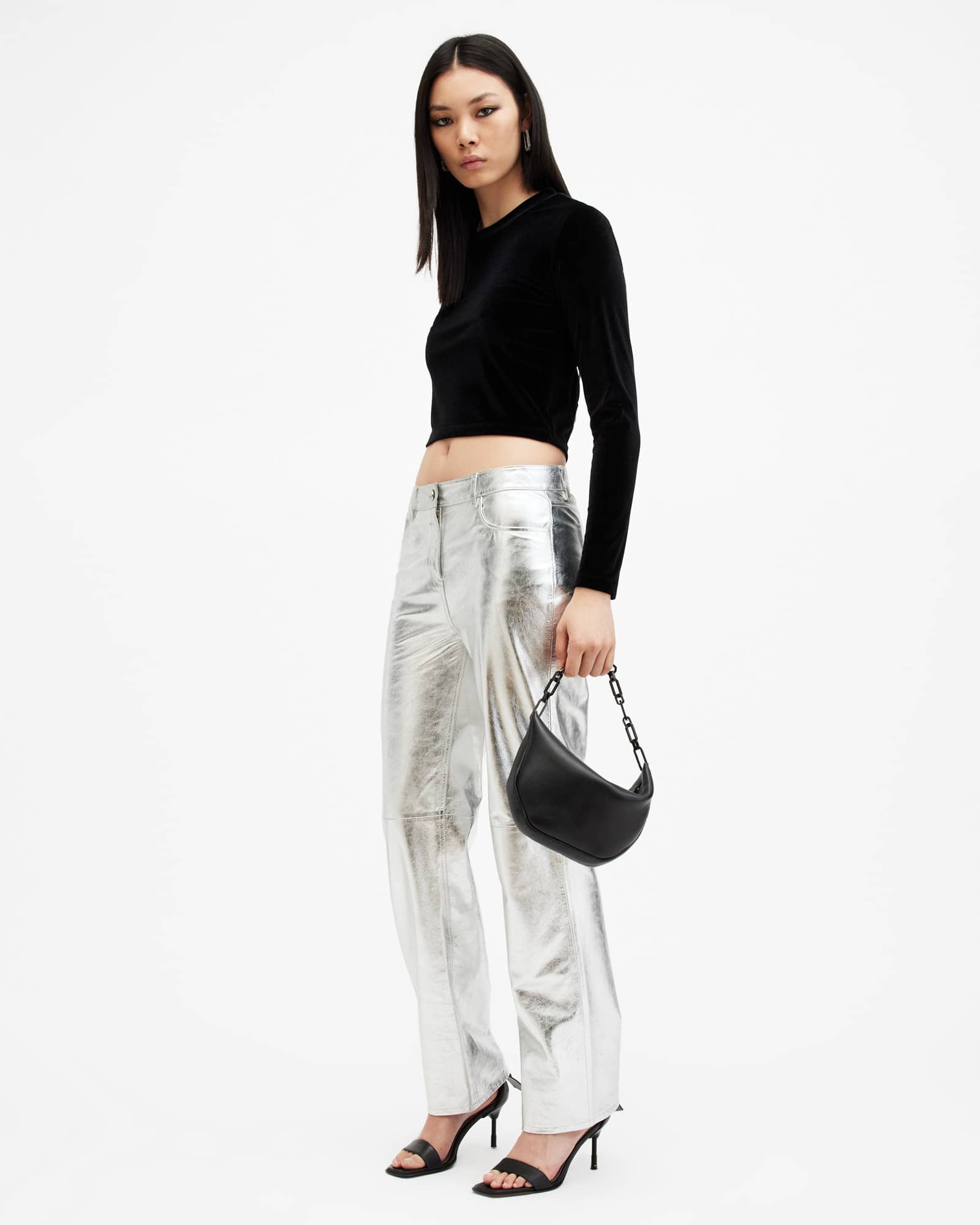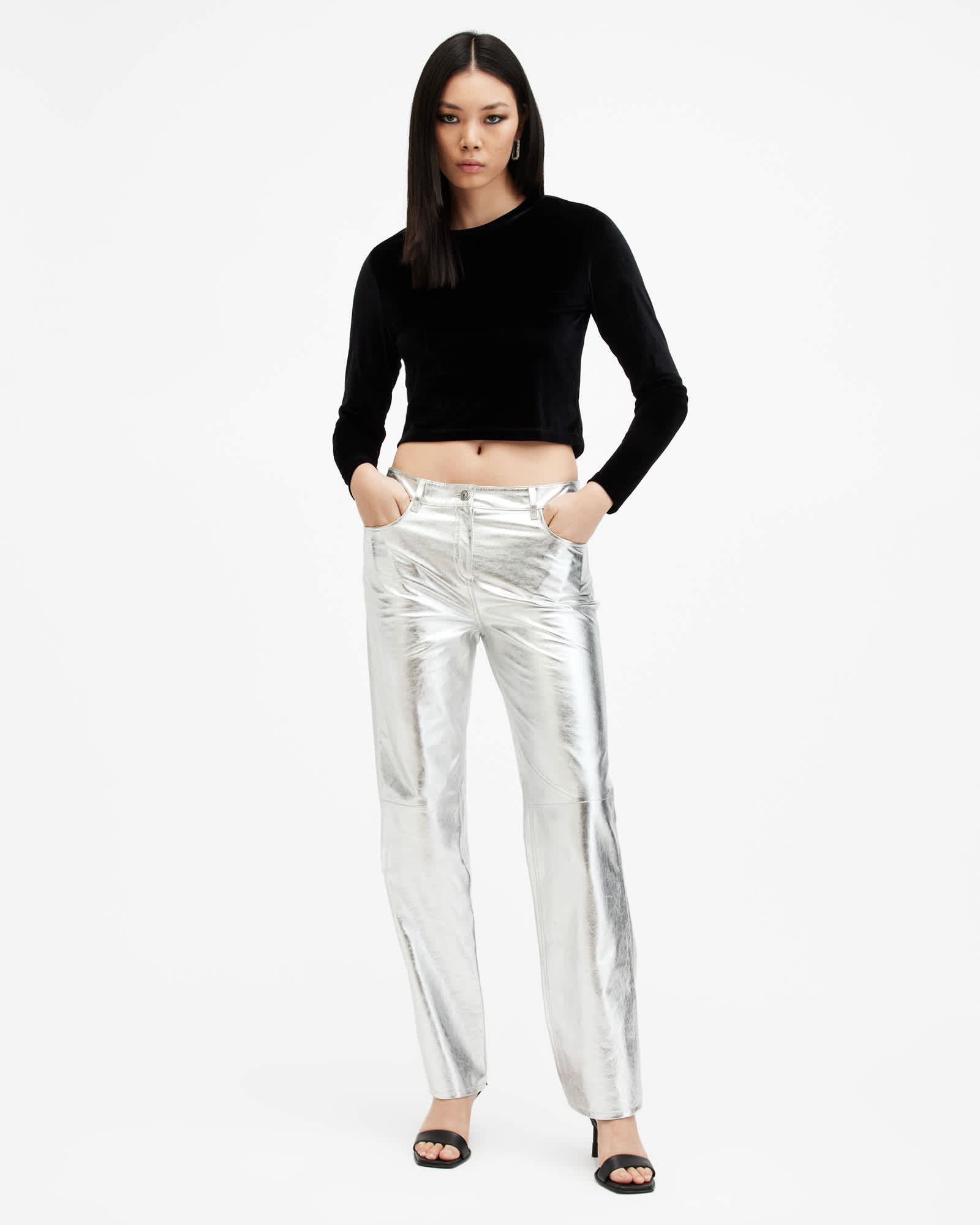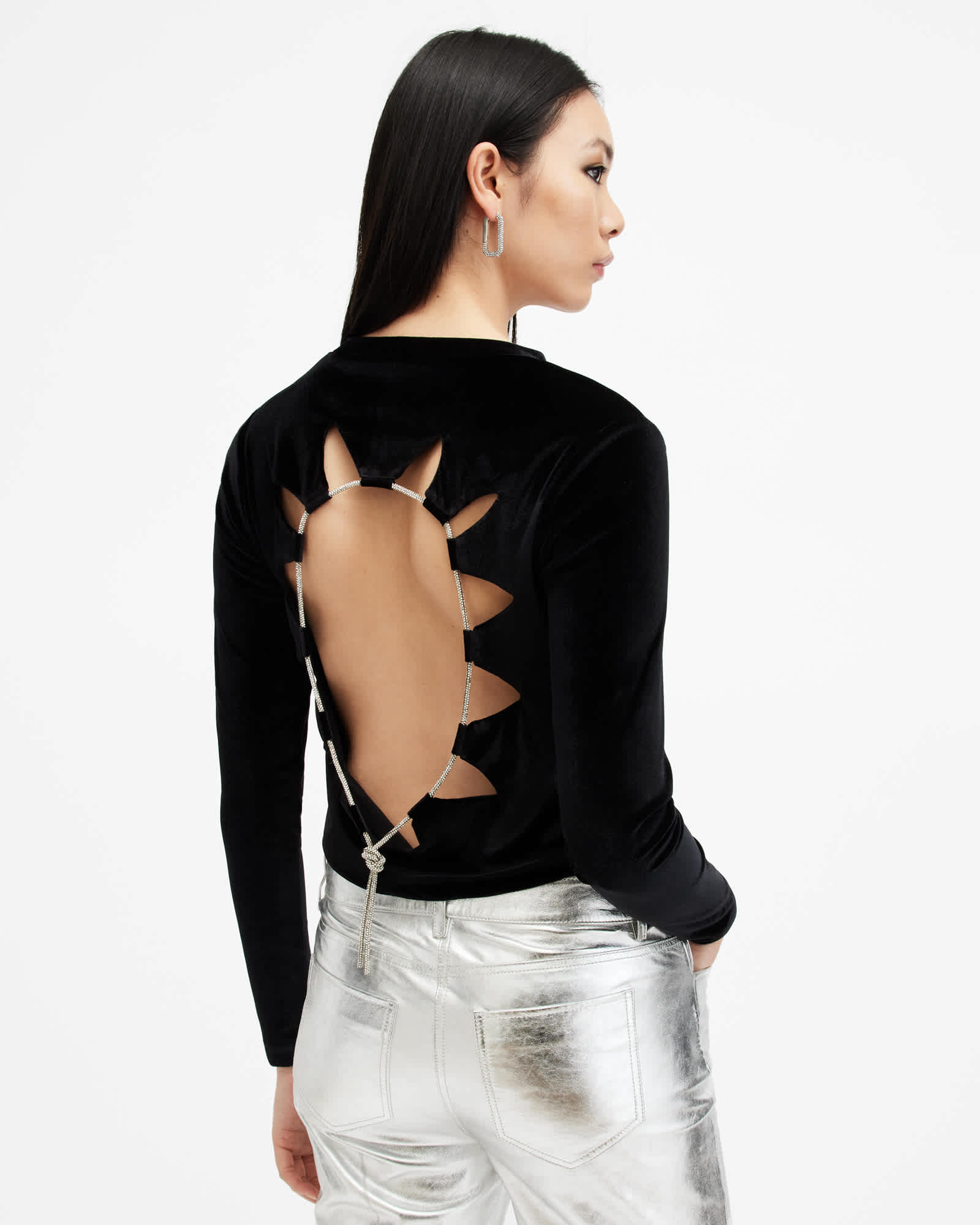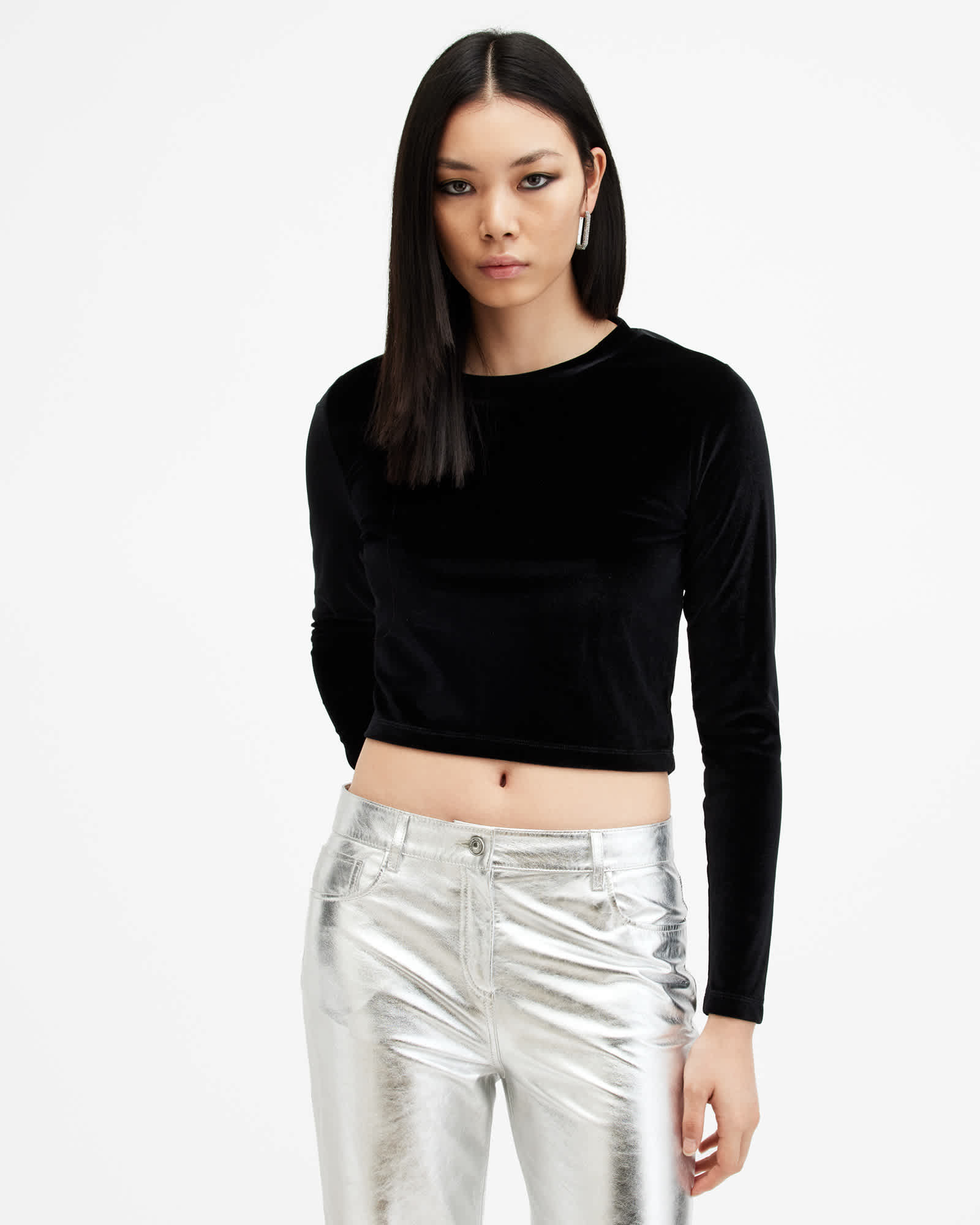 AllSaints Regina Velvet Cut-Out Cropped Top | ricciano UNITED KINGDOM
