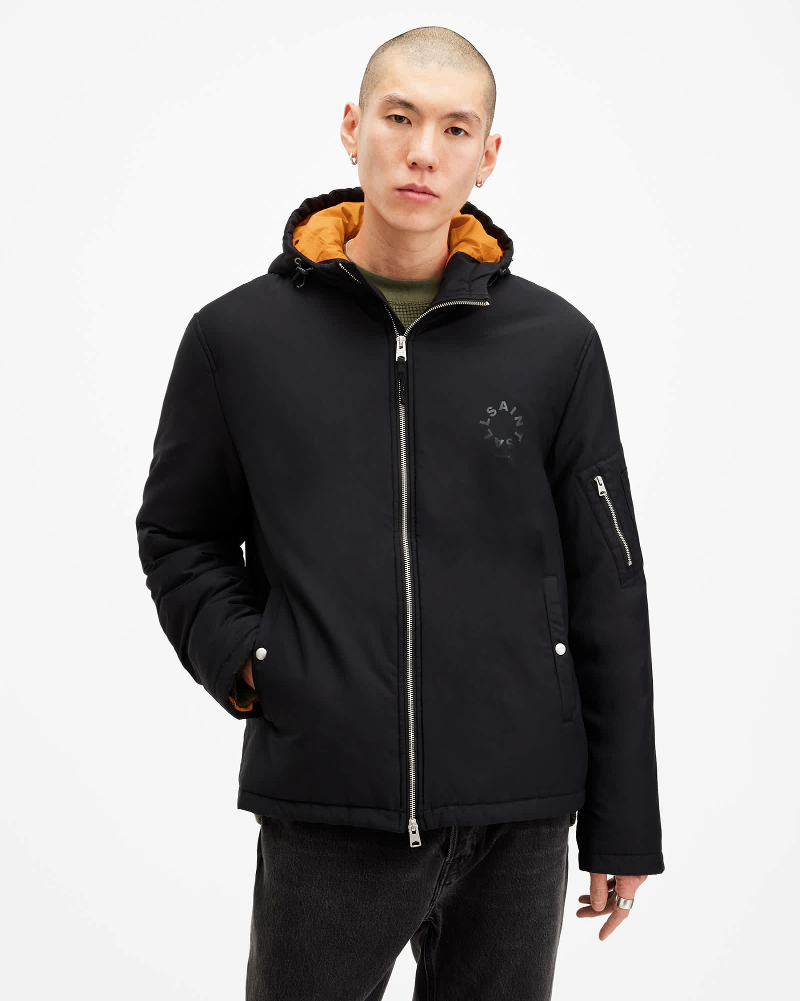 This jacket is designed to a regular fit Zip closure Hood Long sleeves Water-repellent shell Contrast yellow lining Tierra logo Zipped sleeve flight pocket Two lower front flap pockets Recycled wadding