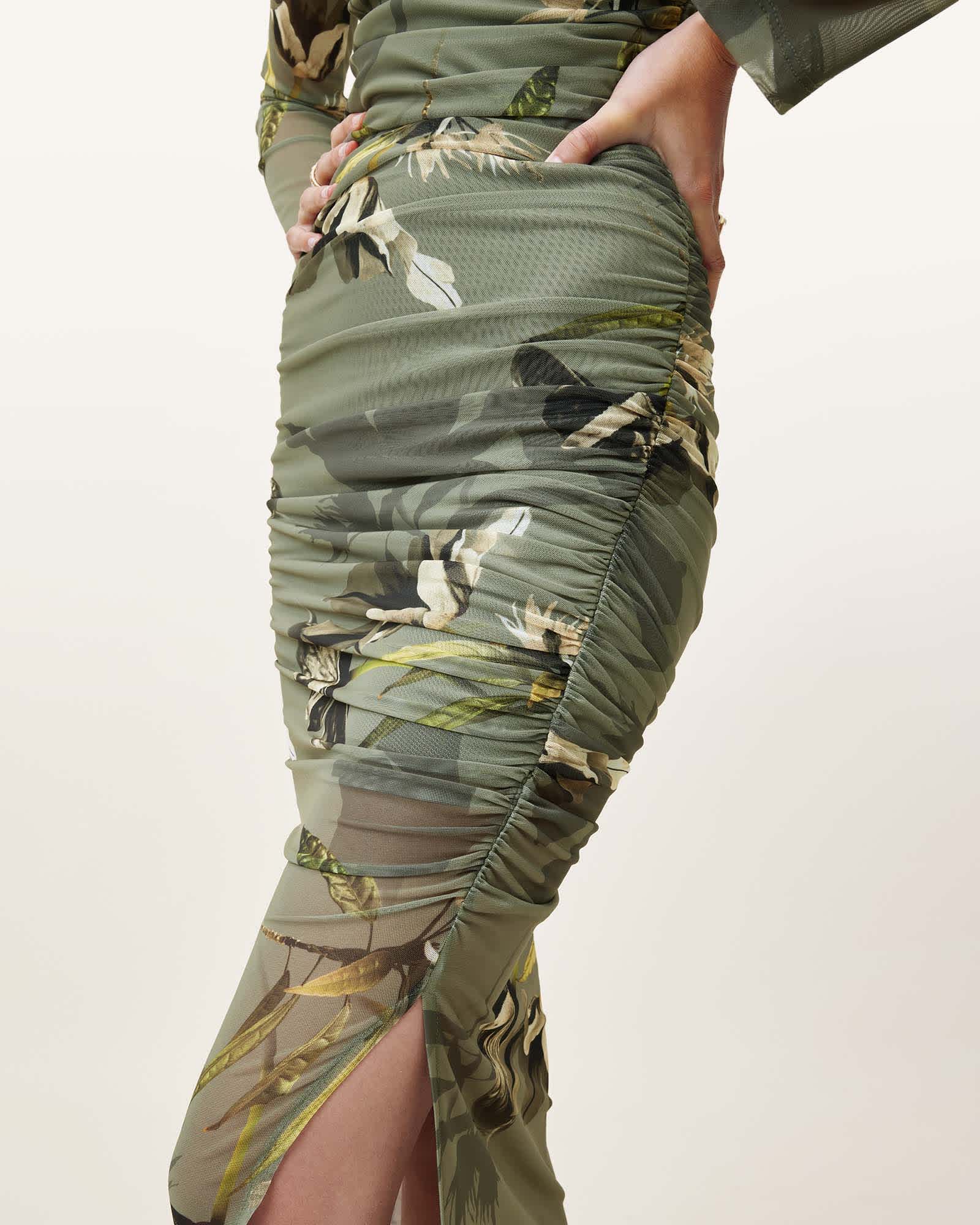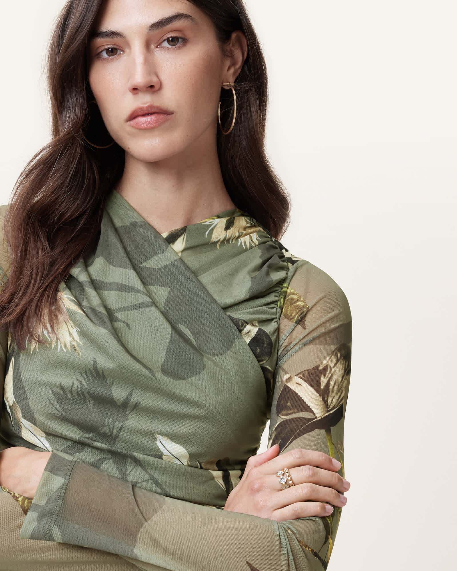 AllSaints Hanako Print Mesh Wrap Maxi Dress | ricciano UNITED KINGDOM