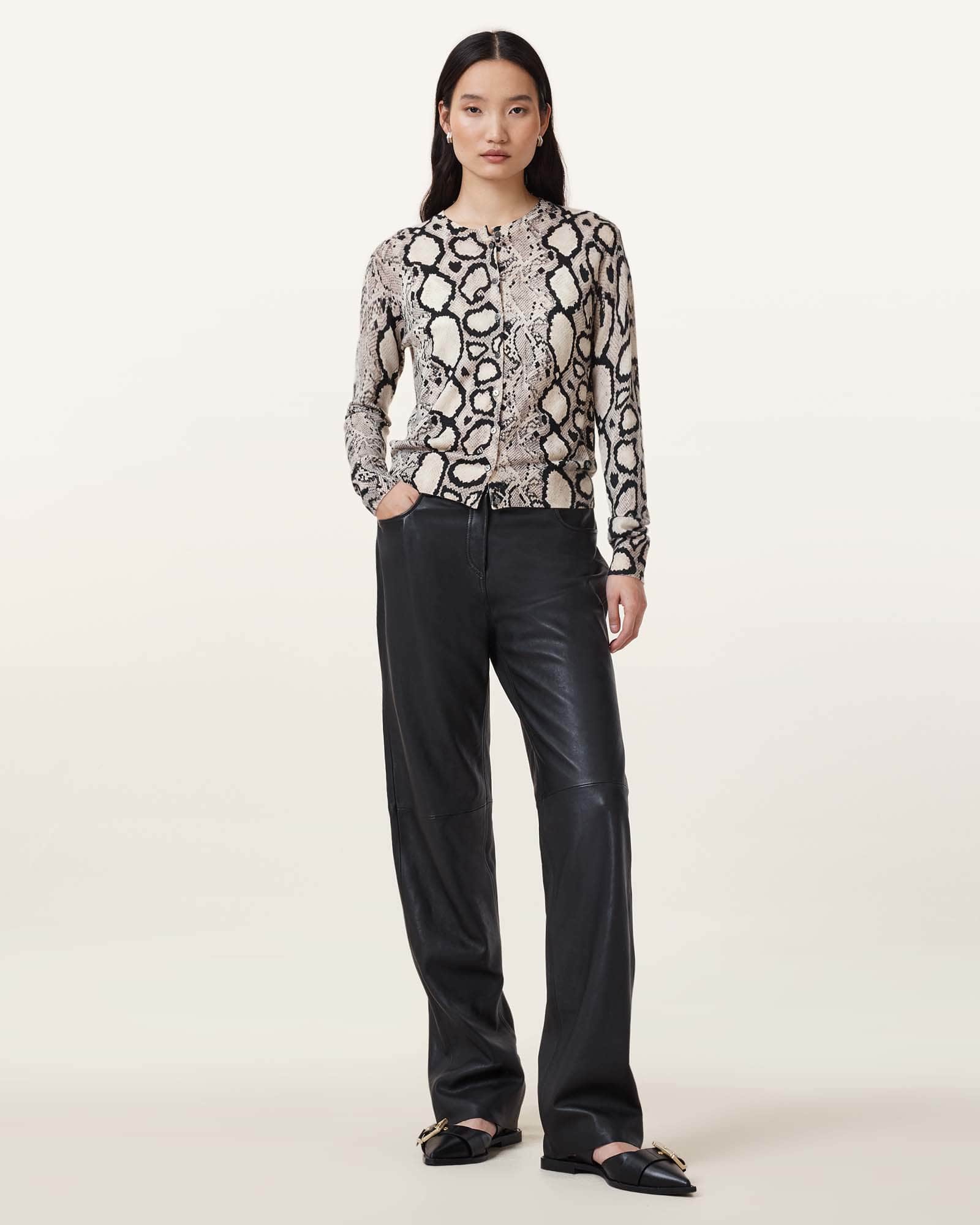 AllSaints Anouk Snake Print Merino Wool Cardigan
